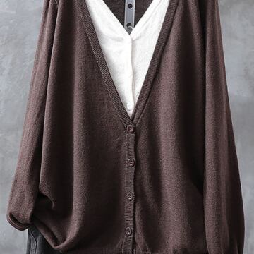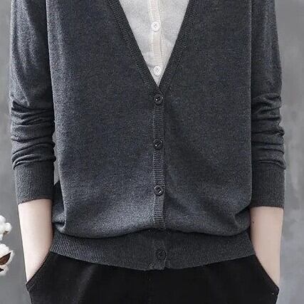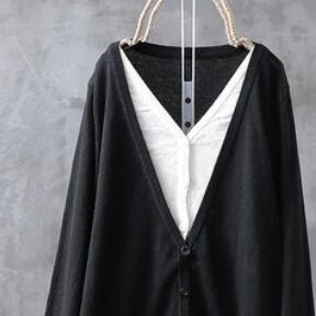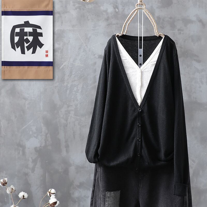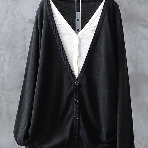 カーディガン トップス カットソー セーター 黒 ブラック 茶色 ブラウン 灰色 グレー ネイビー ミディアム丈 長袖 Vネック 襟なし ストレート ドッキング 重ね着風 お得 かわいい シンプル カジュアル レトロ こなれ感 ラフ ルーズ 存在感 無地 春 2021 20代 30代 レディース ママ OL 通勤 お出かけ 公園デビュー お泊まり 休日 旅行 着回し 普段使い お揃い 韓国 韓国系 ファッション コーデ 新作 プチプラ サイズ M L XL 2XL ゆったり 色展開 大人カラー