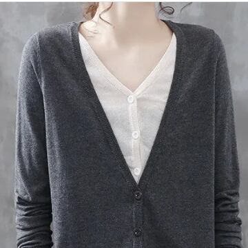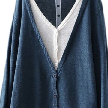 重ね着風に見えるカーディガンです。