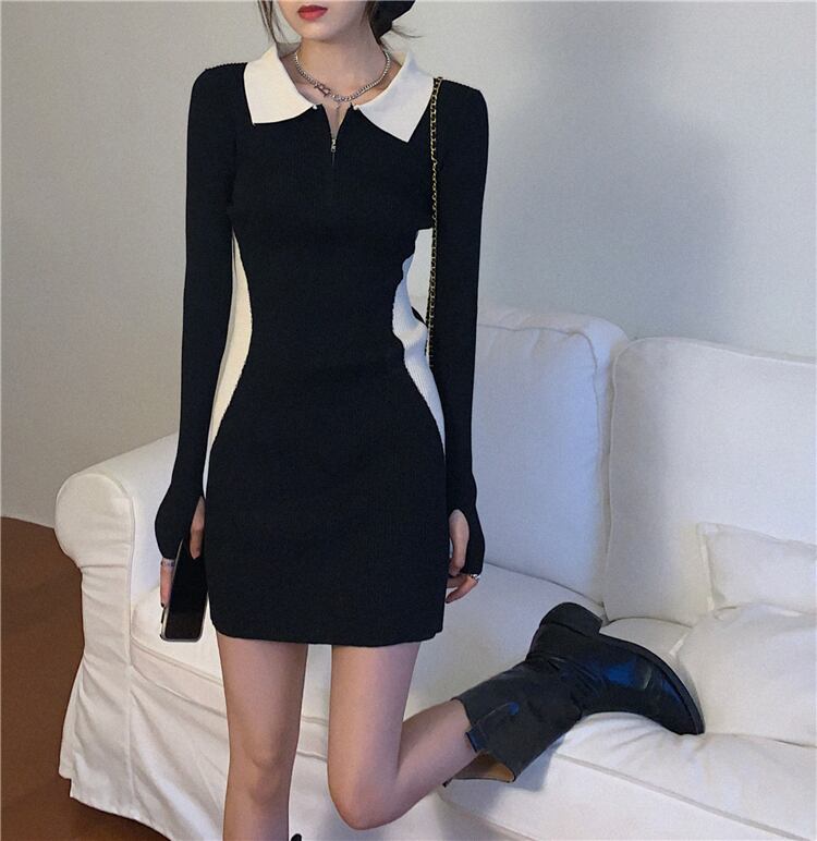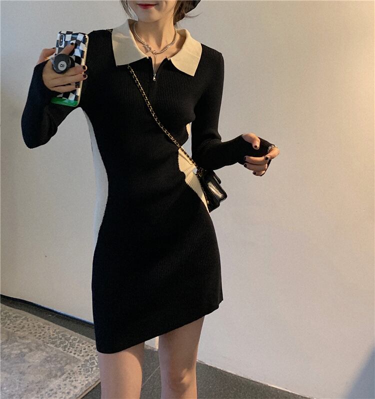 ニットワンピース 切り返しデザインン ワンピース ニットソー セーター 長袖 Vネック ファスナー付き スリム タイト 細身 ストレート スマート かわいい きれいめ シンプル 大人 上品 おしゃれ 大人可愛い 大人女子 こなれ感 ラフ クール モード系 セクシー エレガント 無地 春 秋 冬 誕生日 謝恩会 二次会 ハロウィン クリスマス バレンタイン レディース 女性用 学生 通学 デート お出かけ 女子会 お泊まり 休日 アウトドア パーティー イベント リゾート 旅行 ホテル レストラン 着回し