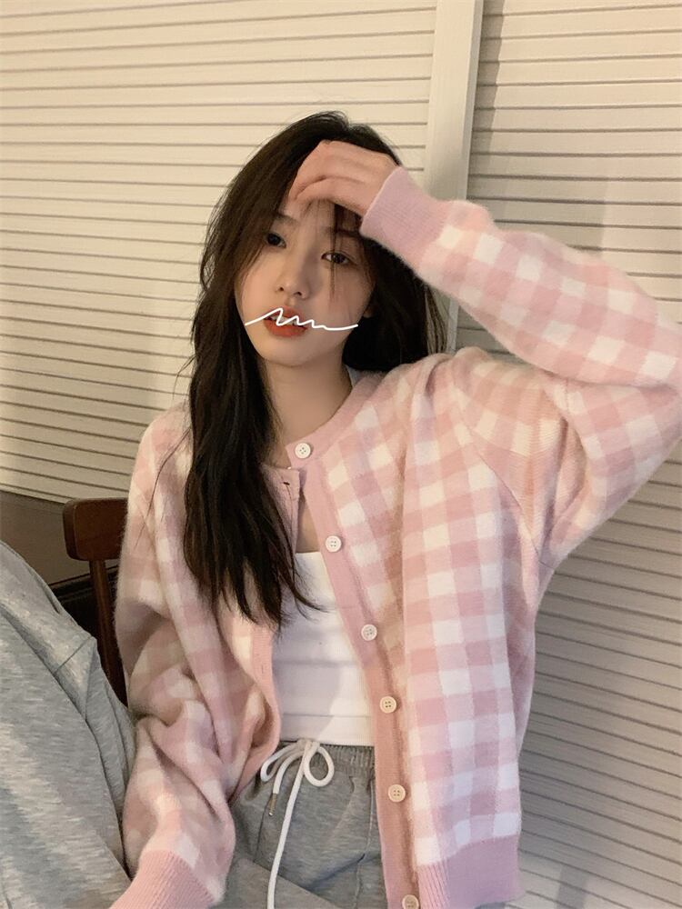 ギンガムチェック柄 トップス セーター カーディガン ミディアム丈 長袖 ドロップショルダー 萌袖 ラウンドネック 前開き 2way ニット 大人可愛い きれいめ シンプル カジュアル 上品 おしゃれ レトロ 大人女子 チェック柄 格子柄 春 秋 冬 2021 レディース 女の子 学生 通学 デート お出かけ 公園デビュー 休日 レストラン 着回し 普段使い 重ね着 双子 韓国 韓国系 オルチャン ファッション 楽ちん モテ 体系カバー フリーサイズ ゆったり サイズ ブルー ピンク 新入荷