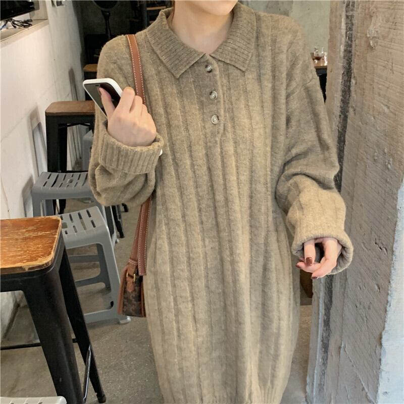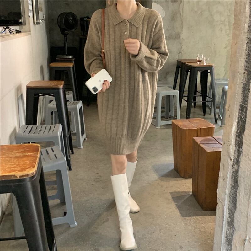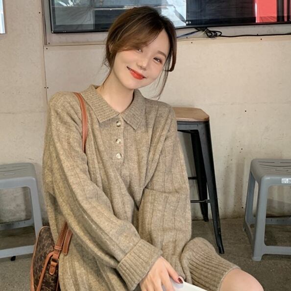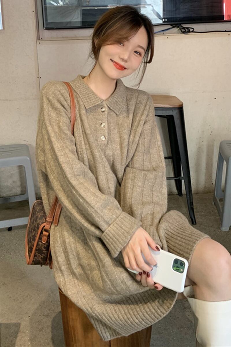 ニットワンピース ミニワンピース ワンピース ミニ ミニ丈 膝上 袖あり 長袖 襟付き Iライン かわいい 大人可愛い シンプル カジュアル おしゃれ お洒落 大人可愛い 大人女子 こなれ感 キュート ガーリー 主役級 無地 秋 冬 10代 20代 30代 レディース 女性用 女の子 学生 通学 デート お出かけ 女子会 お泊まり 休日 着回し 韓国 韓国系 ファッション コーデ スタイル 暖かい モテ 美脚 脚長 新作 定番 送料無料 トレンド 流行 インポート 海外 デートコーデ こなれ感 ボタン