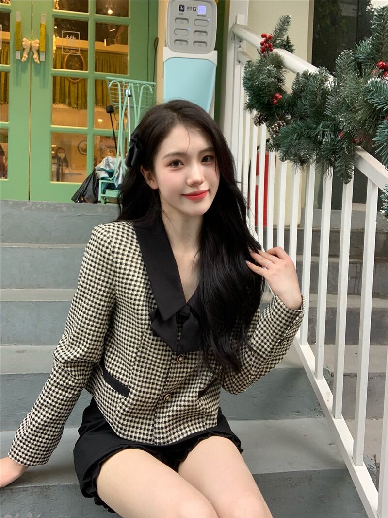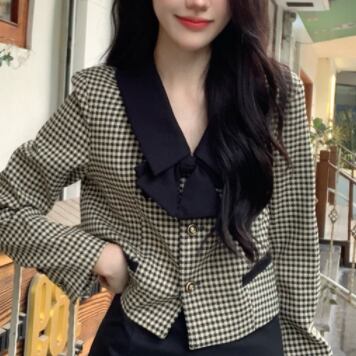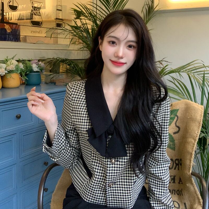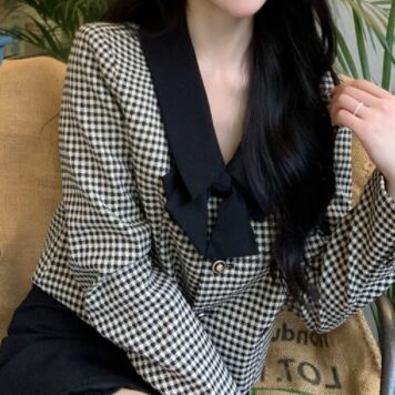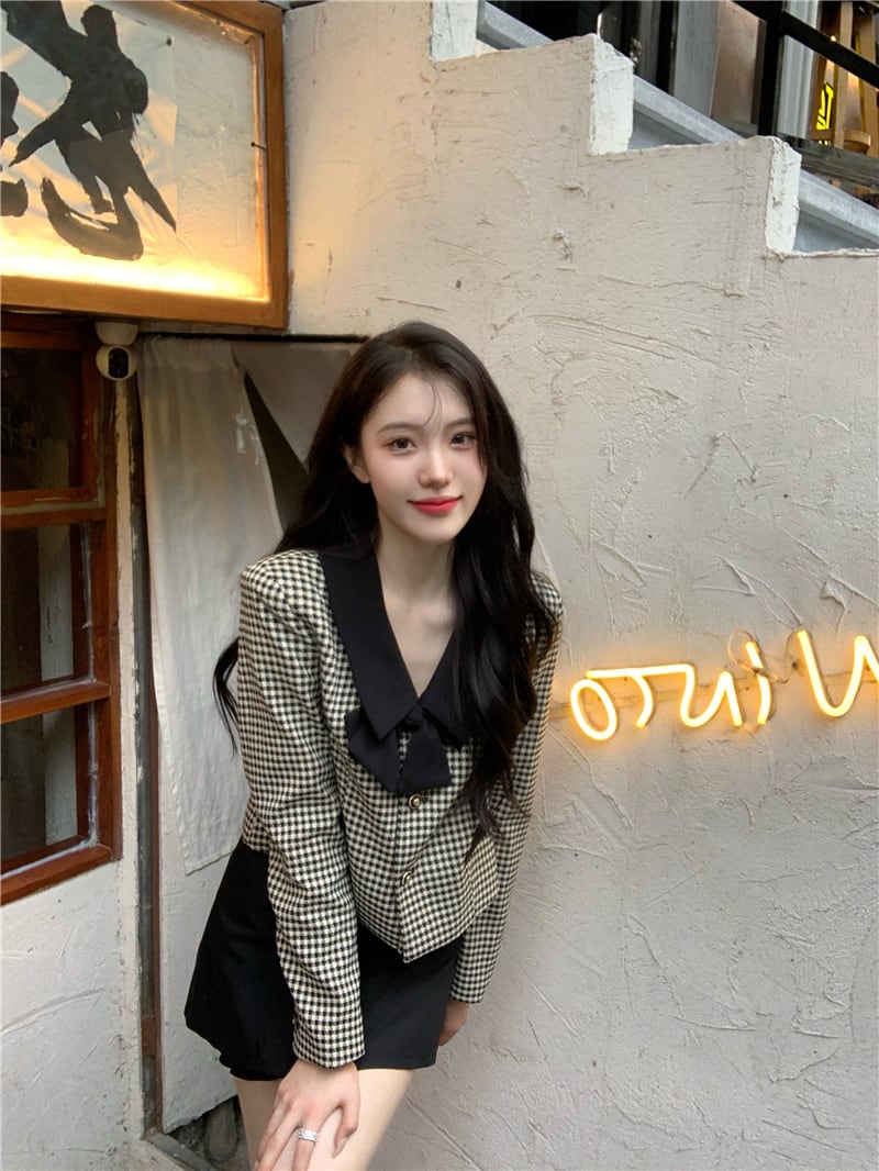 アウター ジャケット ショート ショート丈 長袖 Vネック リボン かわいい 大人可愛い おしゃれ お洒落 大人可愛い 大人女子 ラブリー キュート ガーリー エレガント 主役級 柄 格子柄 千鳥格子 春 秋 入学式 入園式 卒業式 卒園式 結婚式 二次会 10代 20代 30代 レディース 女性用 女の子 デート お出かけ 女子会 お泊まり 休日 パーティー イベント ホテル レストラン ファッション コーデ モテ 新作 定番 送料無料 トレンド 流行 インポート 海外 個性的 コスパ レトロ