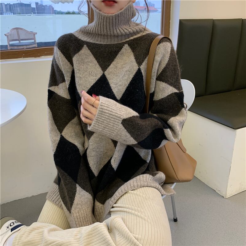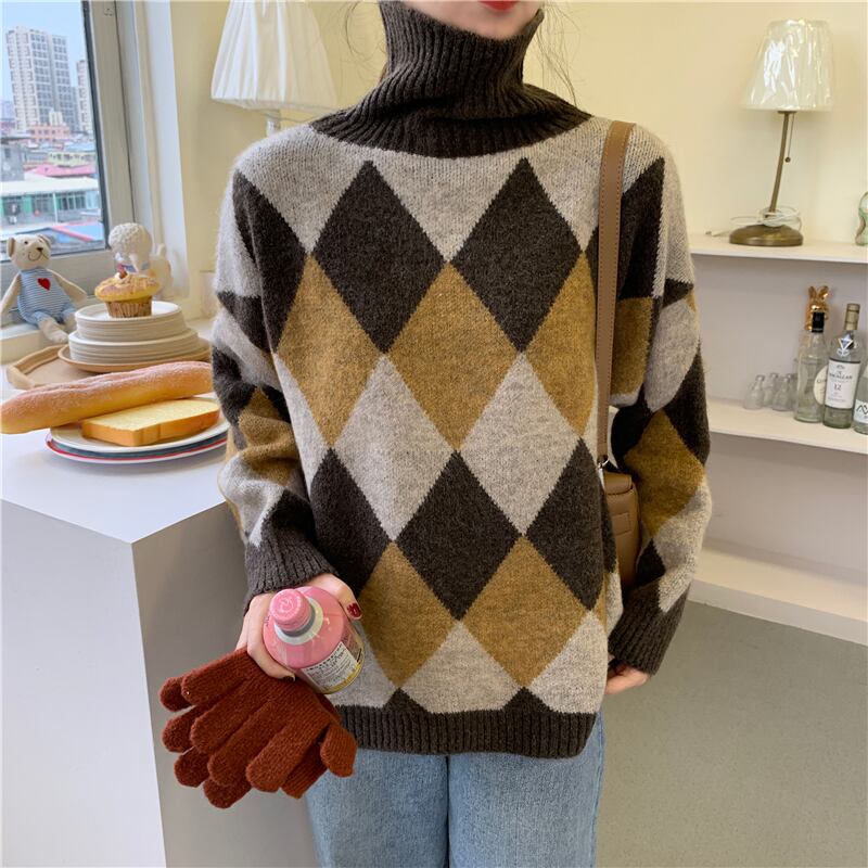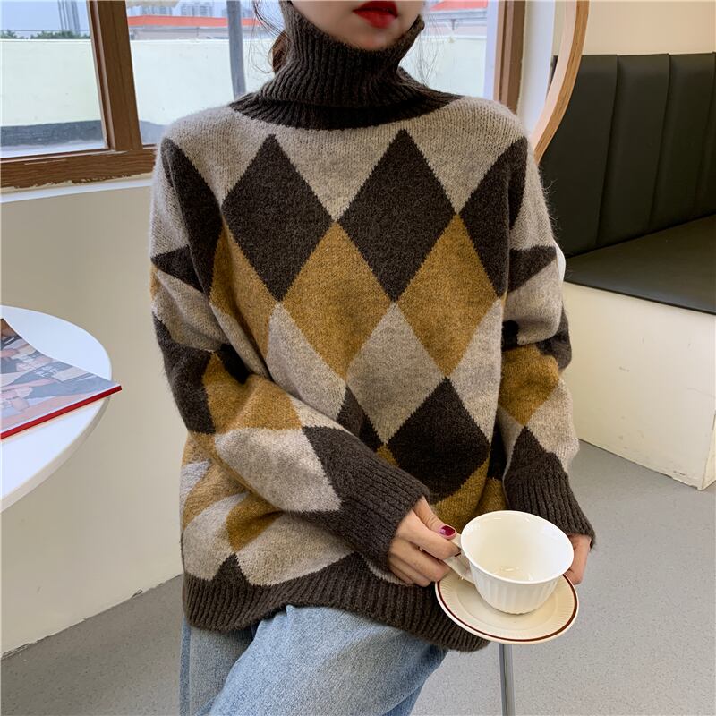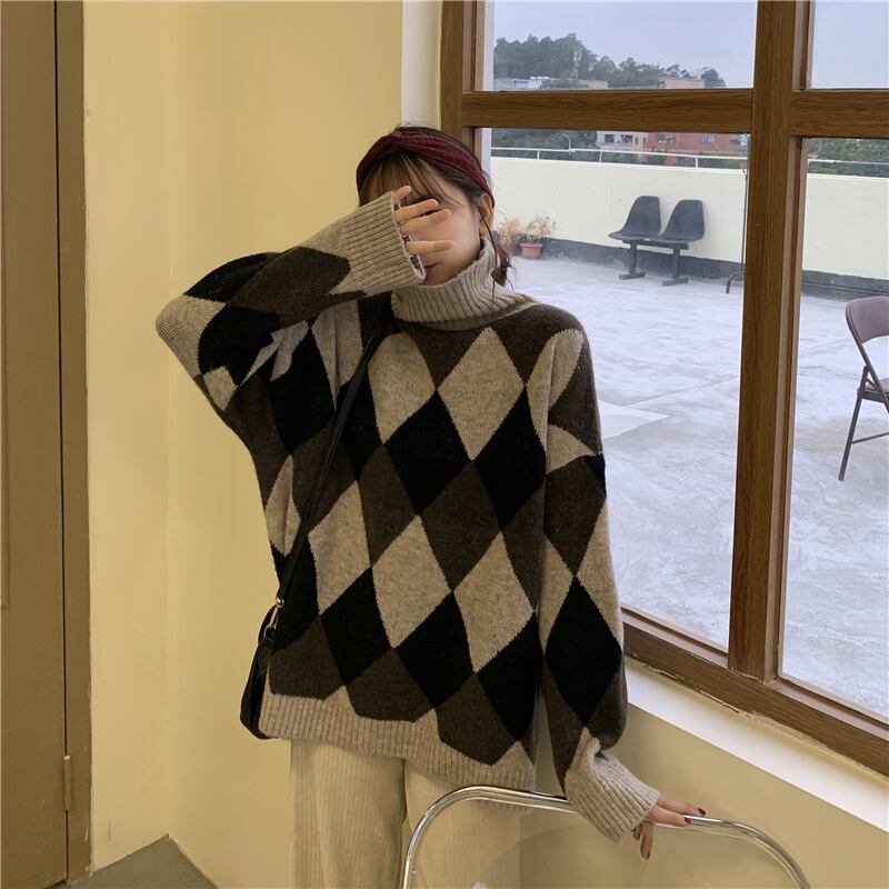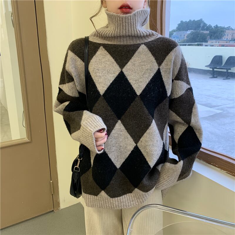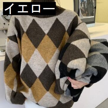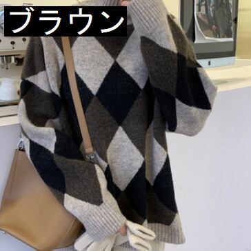 タートルネックセータートップス 袖あり 長袖 タートルネック もこもこ モコモコ ふわふわ ウール 厚手 シンプル カジュアル おしゃれ お洒落 かっこいい レトロ メンズライク マニッシュ ボーイッシュ ラブリー キュート ガーリー ルーズ 個性的 クール モダン 主役級 ダイヤ柄 冬 10代 20代 30代 40代 レディース 女性用 ママ 着回し 普段使い ファッション コーデ スタイル 暖かい 防寒 モテ 体系カバー 定番 トレンド 流行 インスタ映え 茶色 ブラウン 灰色 グレー イエロー