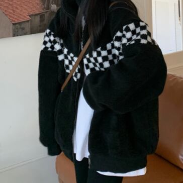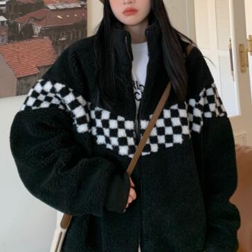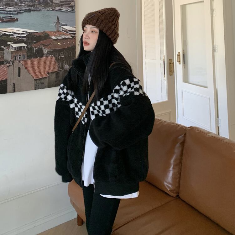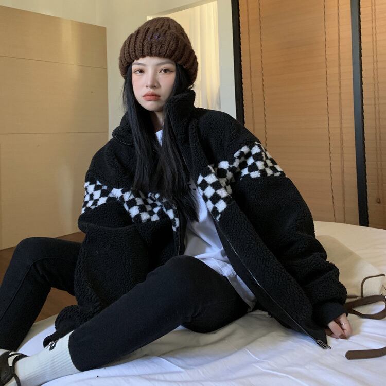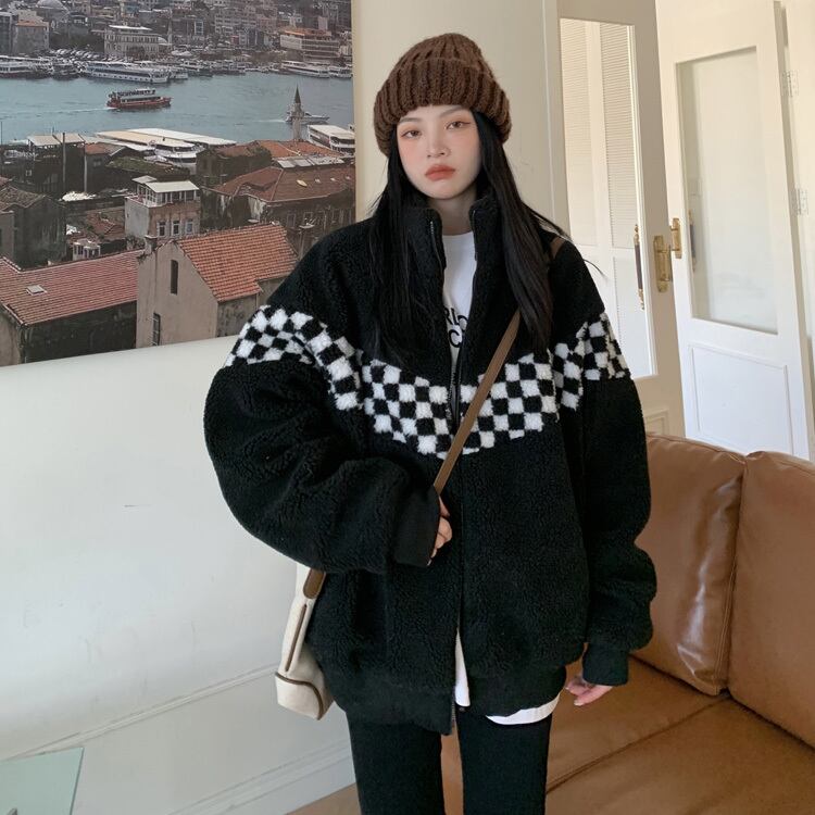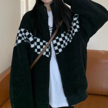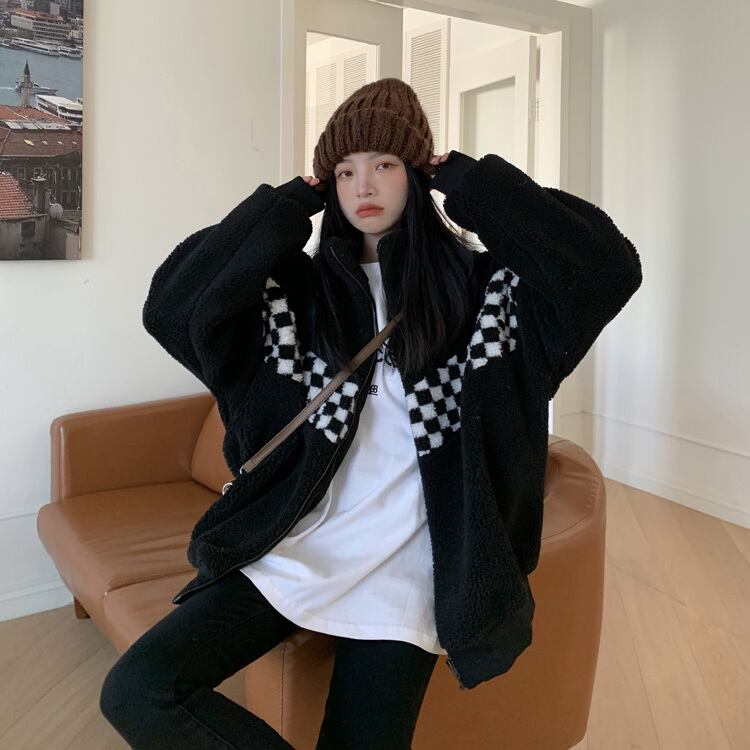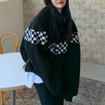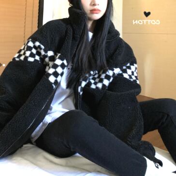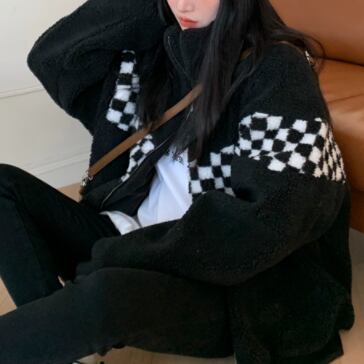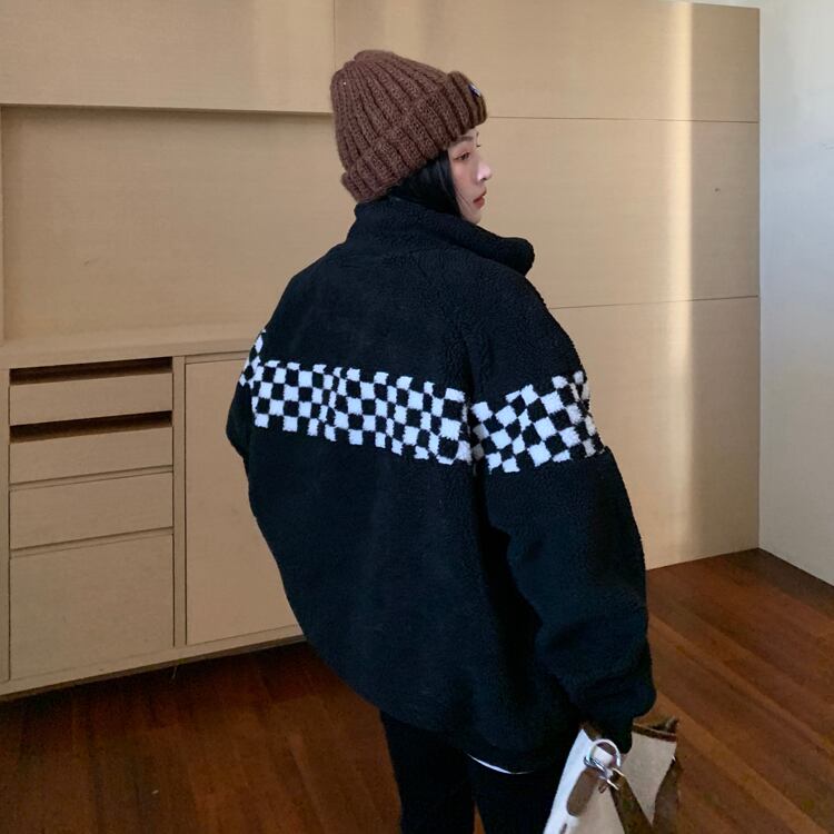 ラムウールコート もこもこアウター 袖あり 長袖 スタンドカラー ワイド もこもこ モコモコ ふわふわ 前開き ウール かわいい 大人可愛い カジュアル おしゃれ お洒落 かっこいい マニッシュ ボーイッシュ ラブリー キュート ルーズ 個性的 モード系 モダン 主役級 存在感 格子柄 冬 10代 20代 30代 OL 通勤 学生 通学 デート お出かけ 休日 旅行 ファッション コーデ スタイル 暖かい 防寒 モテ プレゼント ギフト トレンド 流行 インスタ映え 好感度 ゆったり 黒 ブラック
