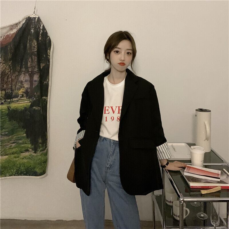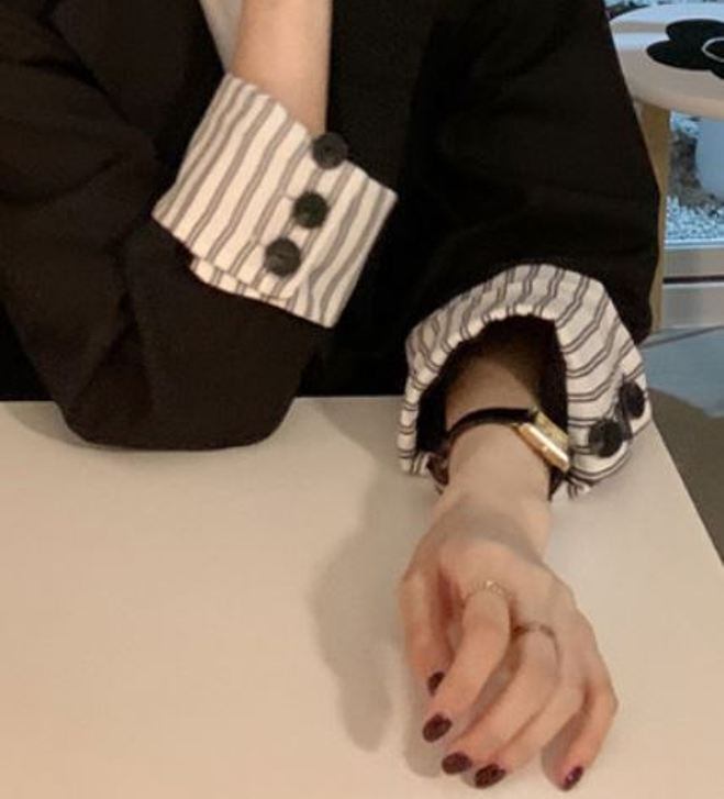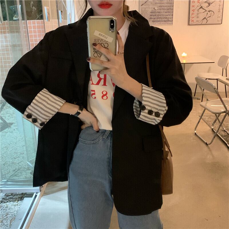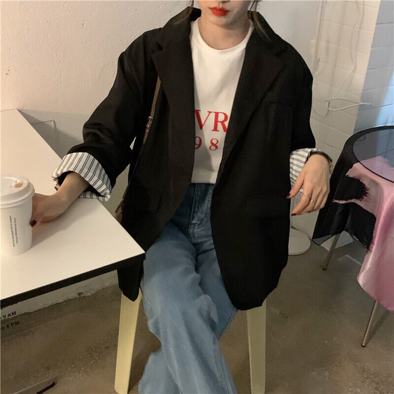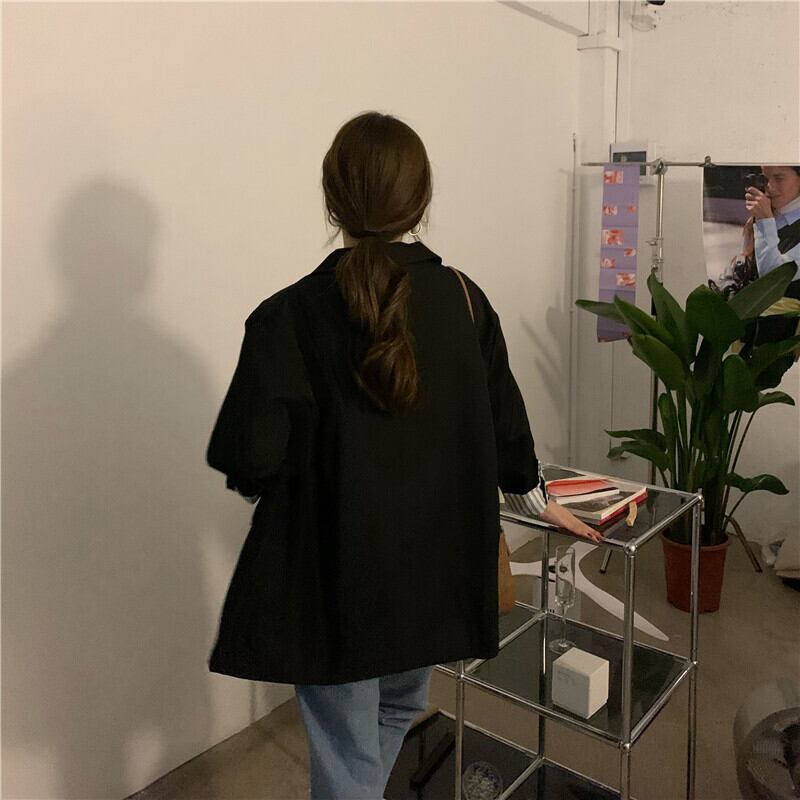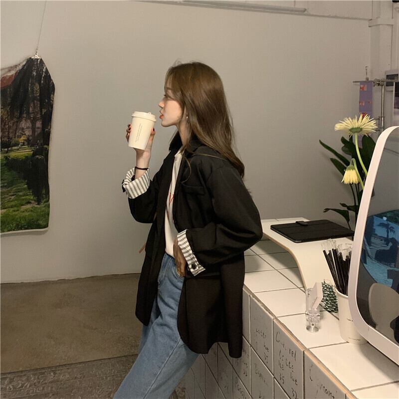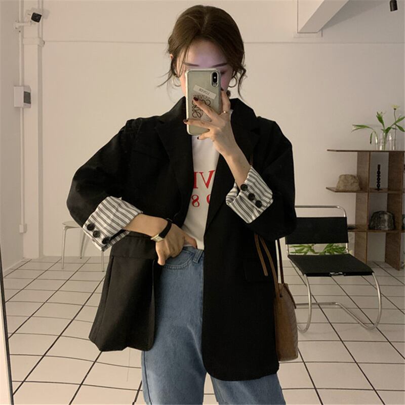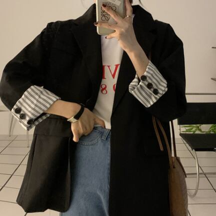 オーバーサイズ 袖ロールアップ 袖口ストライプ テーラードカラー チュニック丈 アウター ジャケット 長袖 襟付き 切り替えデザイン 大人可愛い きれいめ シンプル カジュアル 上品 おしゃれ 大人女子 こなれ感 メンズライク 無地 ストライプ 春 秋 冬 2021 レディース 女性用 ママ 通勤 学生 通学 デート お出かけ 女子会 休日 着回し 普段使い 重ね着 韓国系 オルチャン ファッション スタイル 楽ちん 体系カバー 新作 XS S M L 大きめ ゆったり ゆる サイズ ブラック