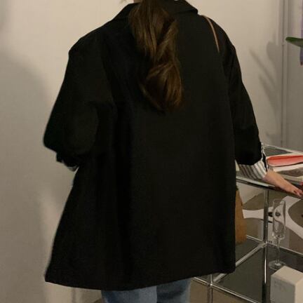 お尻の隠れる丈感&ゆる感のあるオーバーサイズでかっちりしすぎず、体型カバー力があるアイテム。