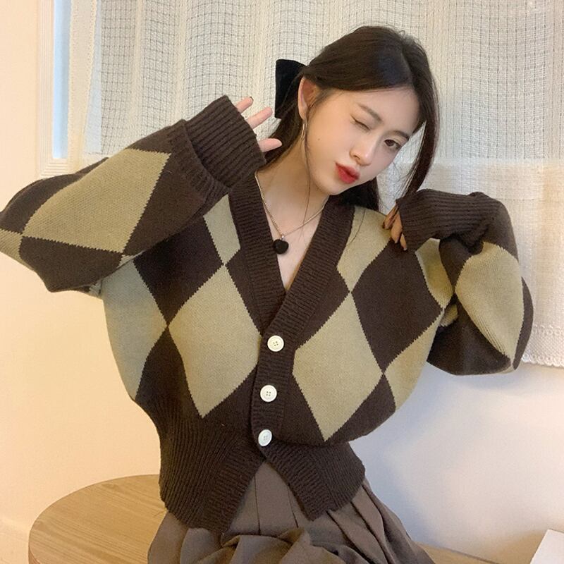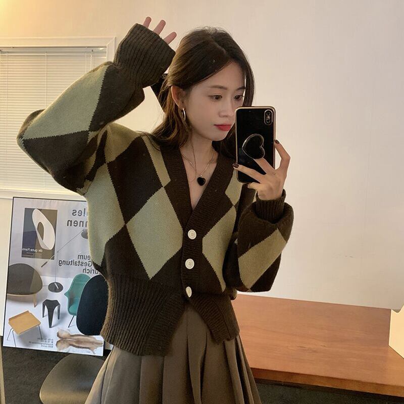 カーディガン トップス セーター 上着 黒 ブラック 茶色 ショート丈 長袖 Vネック ストレート ふわふわ リブ ボタン ウール かわいい 大人可愛い きれいめ 大人 おしゃれ かっこいい レトロ 大人女子 こなれ感 個性的 エレガント 主役級 存在感 チェック柄 秋 冬 クリスマス バレンタイン 10代 20代 OL 通勤 学生 通学 デート お出かけ 女子会 休日 イベント 旅行 ホテル レストラン 着回し 普段使い 重ね着 ファッション コーデ スタイル 暖かい インスタ映え フリーサイズ