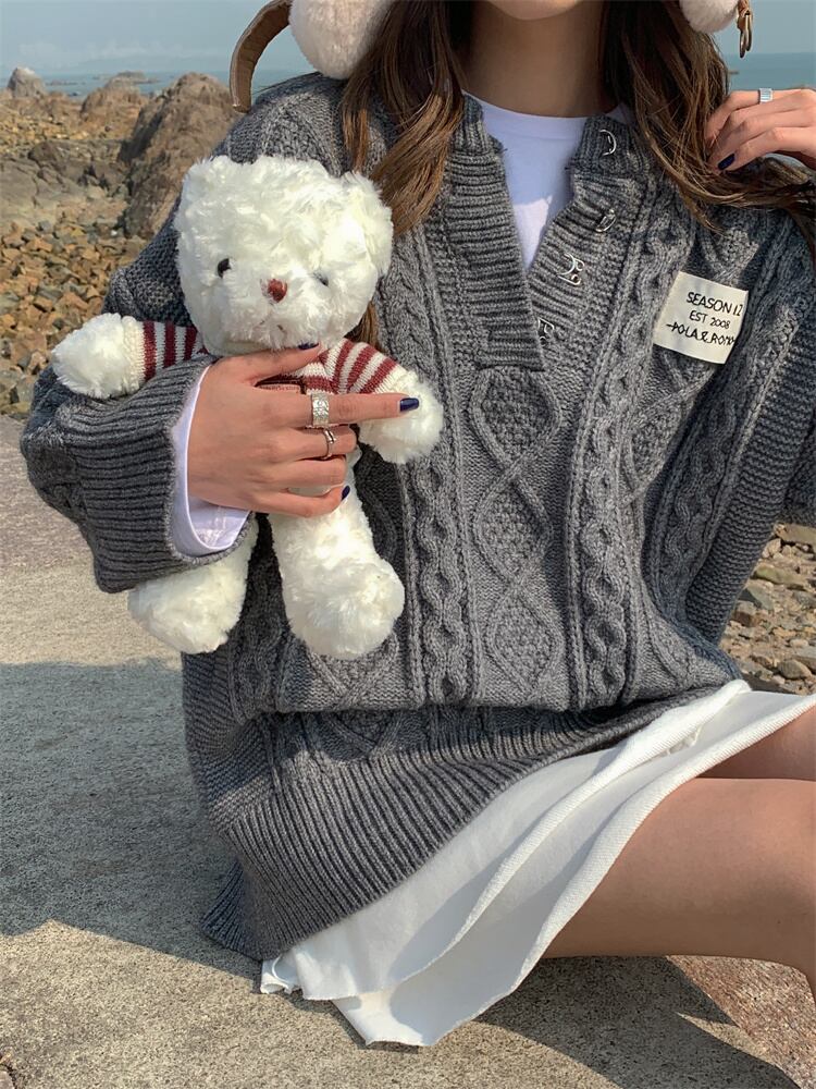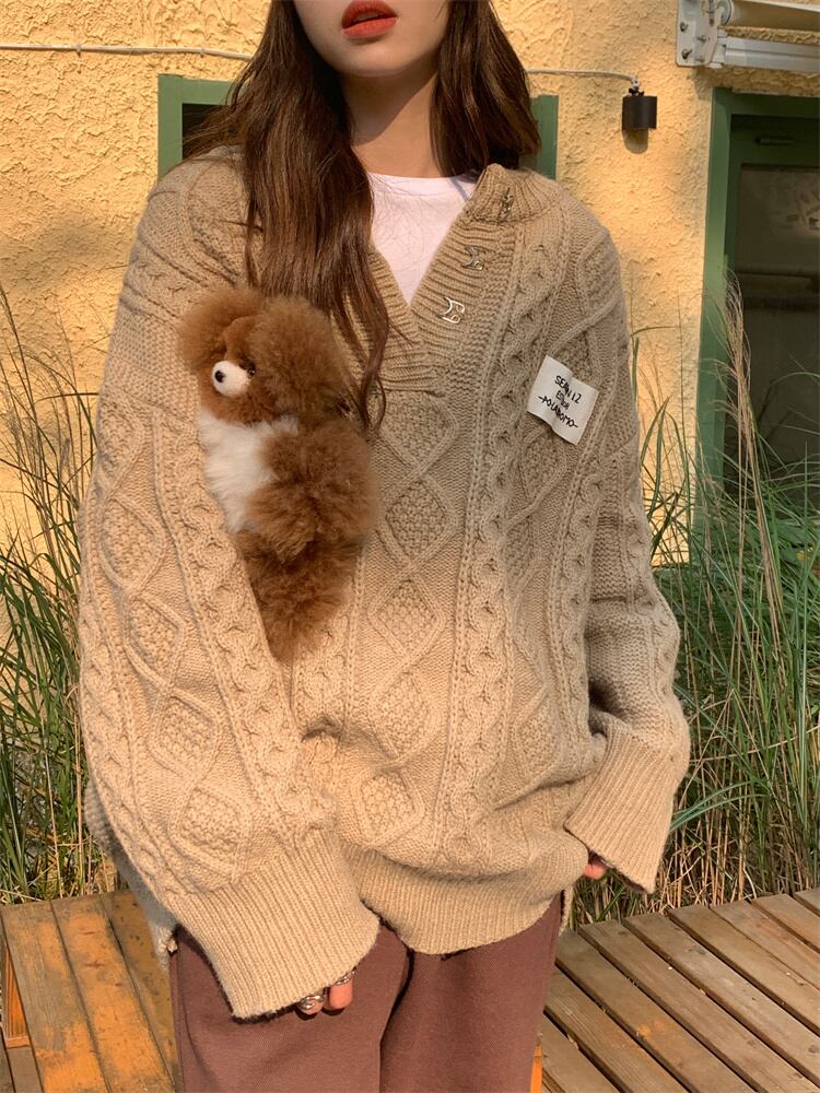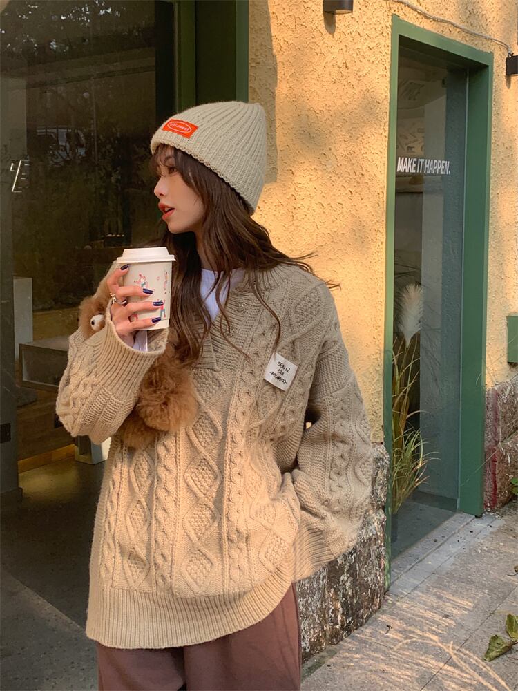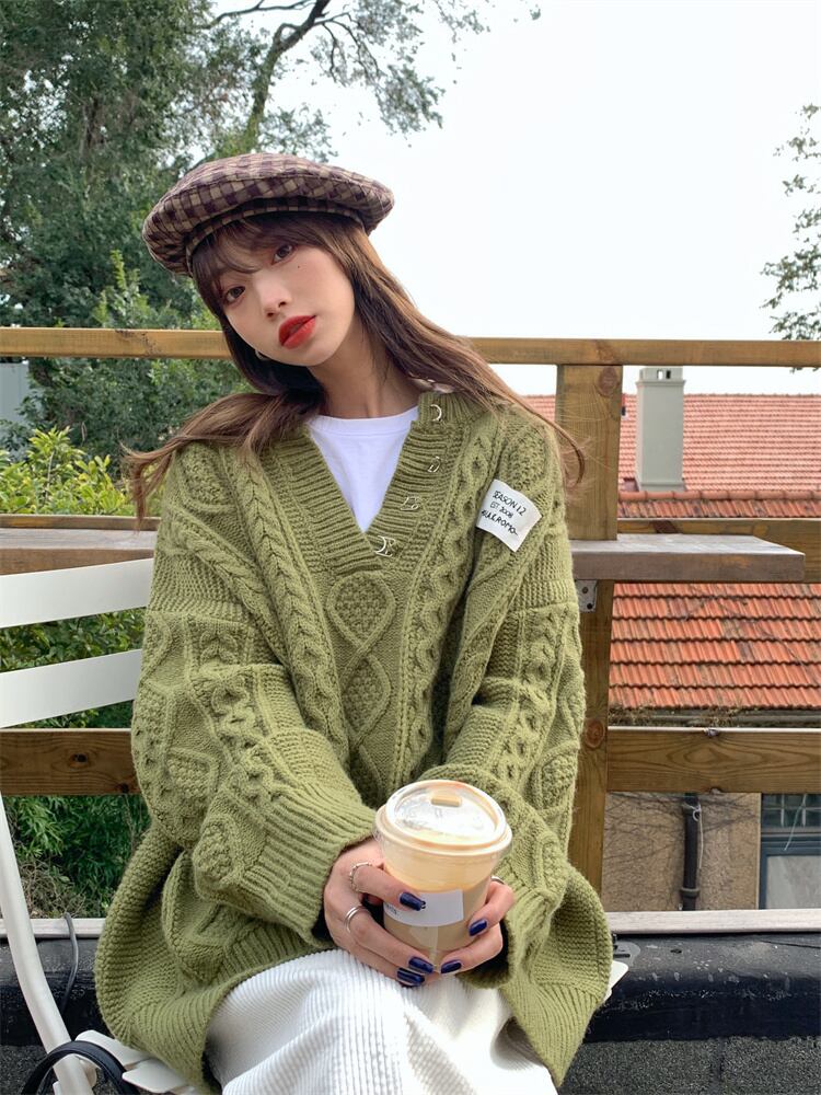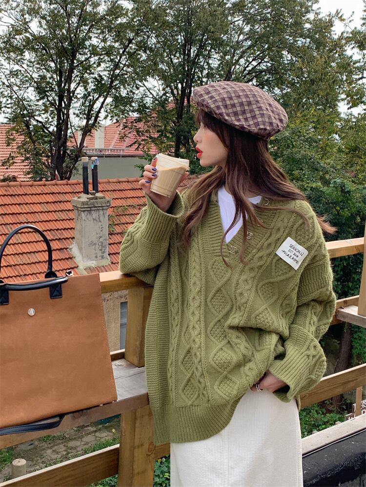 ケーブルニット トップス セーター フリーサイズ 緑 グリーン 灰色 グレー アプリコット プルオーバー 袖あり 長袖 ドロップショルダー Vネック Uネック 襟なし デザインネック ワイド ニット お得 かわいい 大人可愛い シンプル カジュアル 上品 おしゃれ こなれ感 キュート ルーズ 無地 春 秋 冬 謝恩会 二次会 OL 通勤 学生 通学 デート お出かけ 女子会 休日 アウトドア イベント 旅行 着回し 普段使い 韓国 オルチャン 楽ちん モテ プレゼント プチプラ 海外 インポート