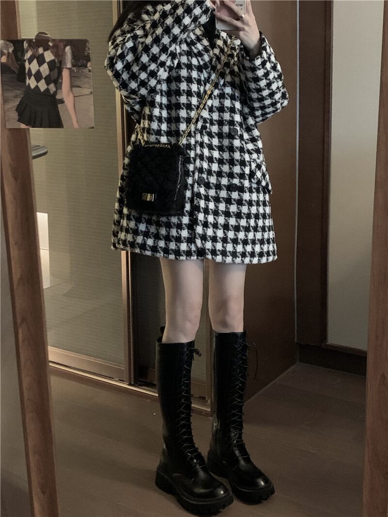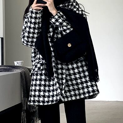 千鳥柄コート ブラック ホワイト アウター コート ブルゾン ジャケット 長袖 スリム 細身 ストレート スマート かわいい きれいめ シンプル 大人 上品 おしゃれ 大人可愛い 大人女子 こなれ感 ラフ クール モード系 セクシー エレガント 無地 春 秋 冬 誕生日 謝恩会 二次会 ハロウィン クリスマス バレンタイン レディース 女性用 学生 通学 デート お出かけ 女子会 お泊まり 休日 アウトドア パーティー イベント リゾート 旅行 ホテル レストラン 着回し 普段使い 韓国 韓国系 ギフト