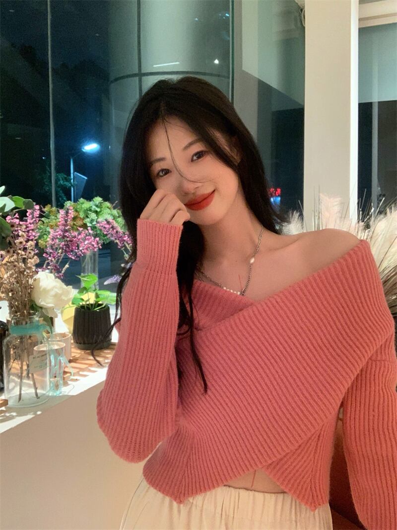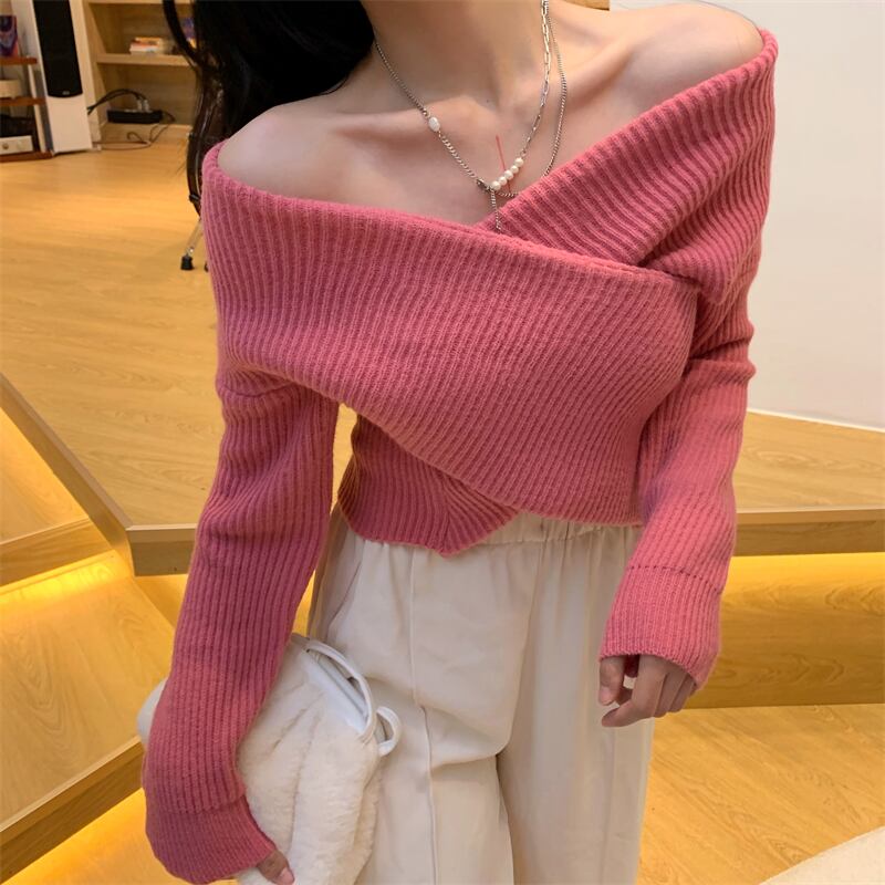 オフショルダーセーター トップス ミニ ミニ丈 袖あり 長袖 Vネック オフショル スリム タイト 細身 リブニット ビスコース かわいい 大人可愛い きれいめ おしゃれ お洒落 かっこいい 大人女子 ラブリー キュート 個性的 モード系 セクシー モダン 主役級 存在感 無地 秋 冬 10代 20代 レディース 女性用 OL 学生 デート お出かけ 休日 リゾート ファッション コーデ スタイル 脚長 ギフト 新作 トレンド 流行 インスタ映え イメチェン 好感度 イメージアップ 注目 新入荷