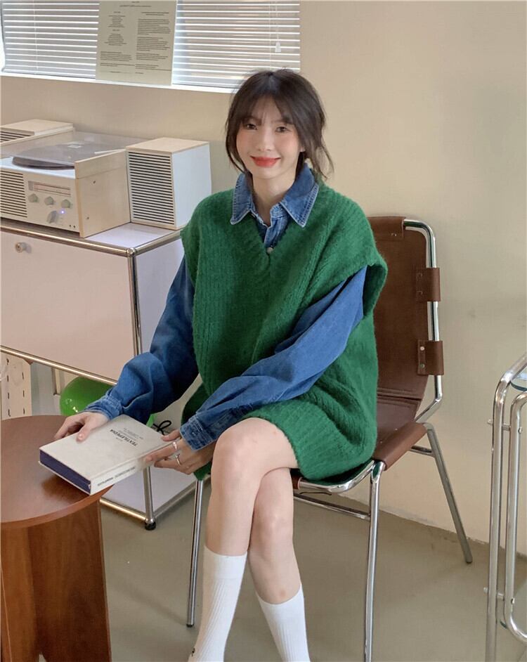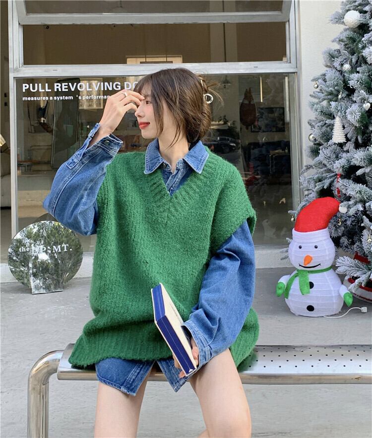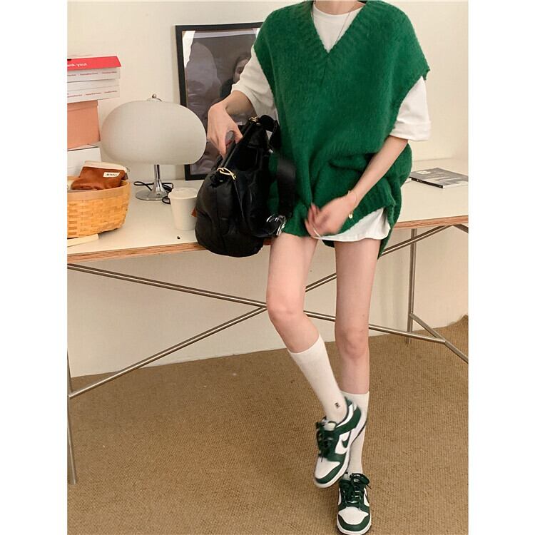 Vネックベスト トップス 袖なし もこもこ モコモコ ふわふわ ウール 厚手 かわいい 大人可愛い シンプル カジュアル 大人 かっこいい 大人女子 こなれ感 ラフ マニッシュ ラブリー キュート ルーズ 無地 秋 冬 10代 20代 レディース 女性用 OL 通勤 学生 通学 デート お出かけ 休日 アウトドア 旅行 着回し 普段使い 重ね着 ファッション コーデ スタイル 楽ちん 暖かい 体系カバー 定番 トレンド インスタ映え 好感度 流行 大きめ ゆったり ゆる 緑 グリーン アプリコット