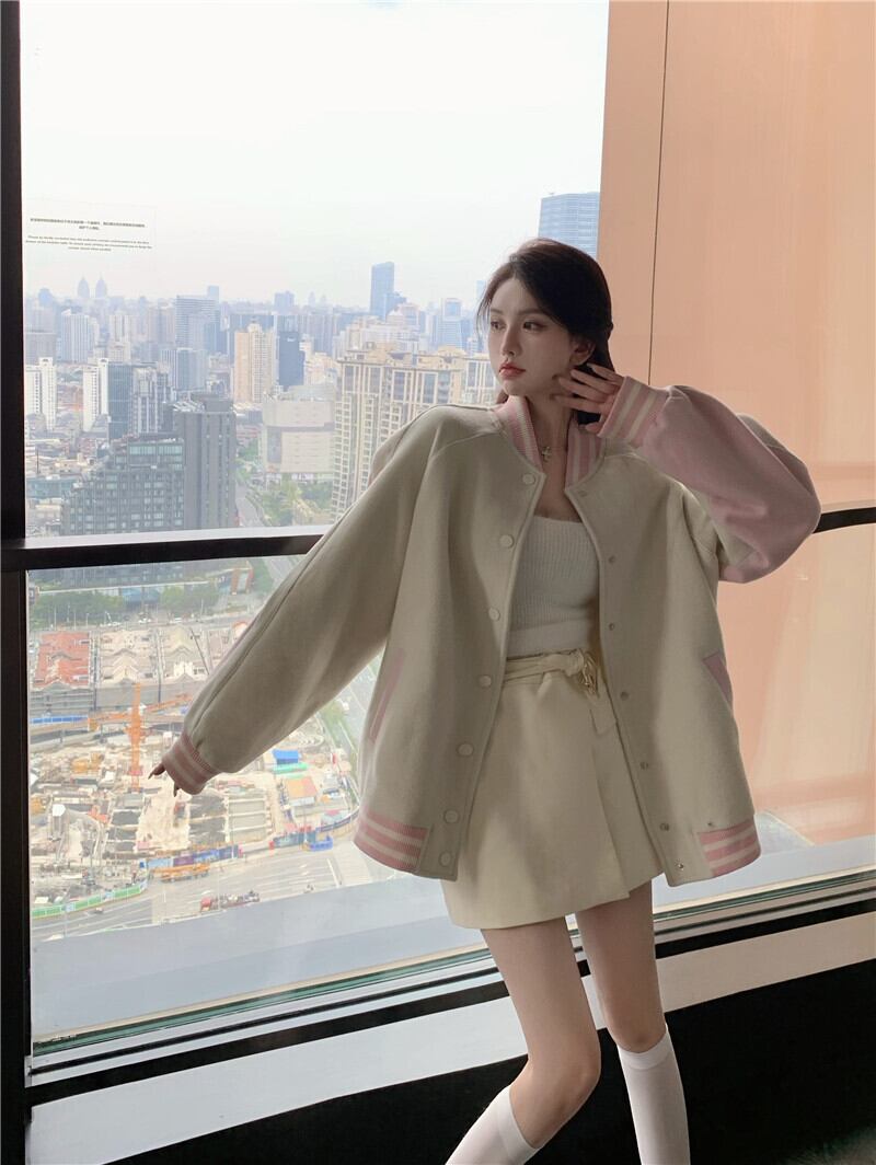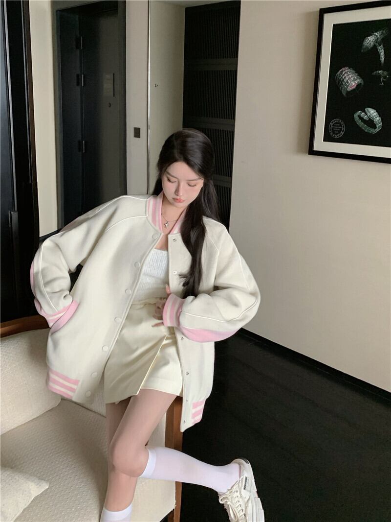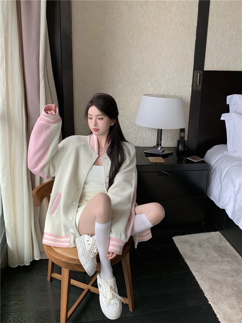 スタジャンコート シャンパー アウター 袖あり 長袖 スタンドカラー 前開き 綿 かわいい カジュアル おしゃれ お洒落 かっこいい レトロ こなれ感 ラフ メンズライク マニッシュ ボーイッシュ スポーティー ラブリー キュート ルーズ 個性的 モダン 主役級 存在感 柄 秋 冬 10代 20代 レディース 女性用 着回し 普段使い ファッション コーデ スタイル 楽ちん 暖かい 防寒 モテ プレゼント ギフト 新作 トレンド 流行 インスタ映え イメチェン 好感度 イメージアップ 目玉 アプリコット