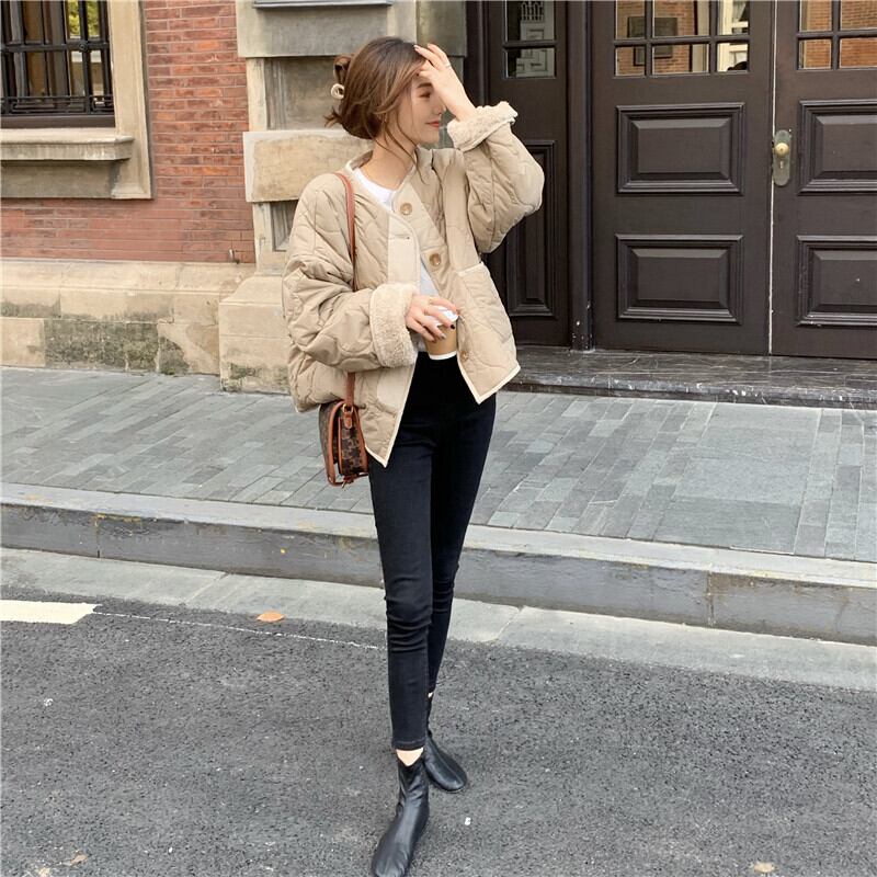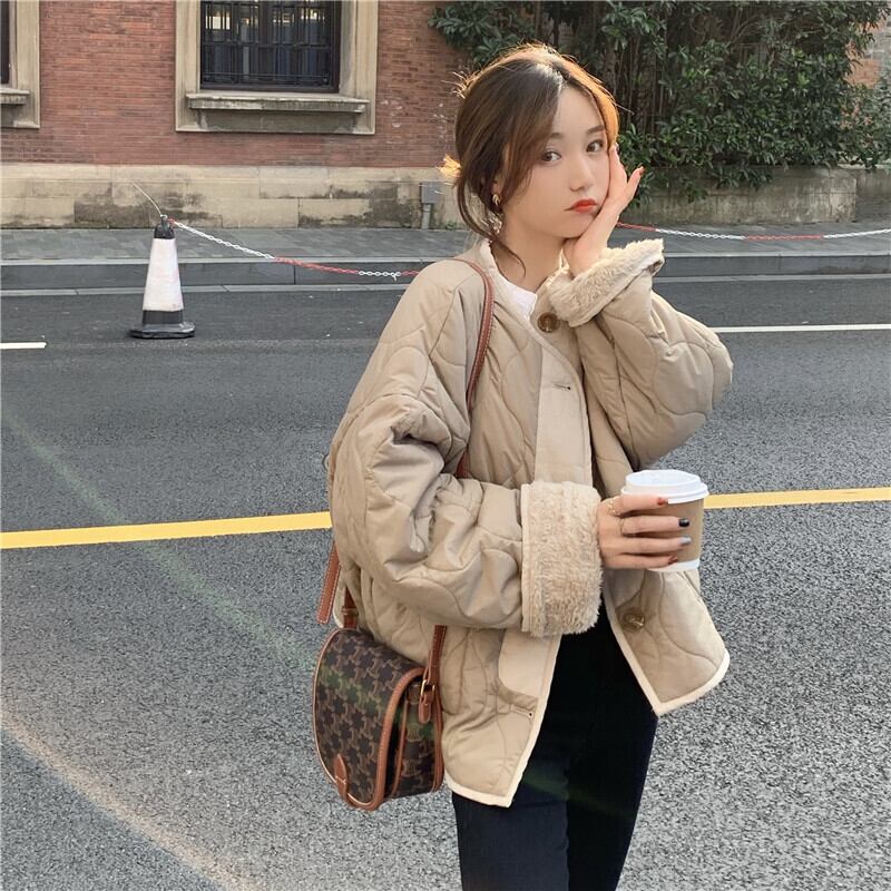 キルティングジャケット リバーシブルジャケット 技あり アウター コート ジャケット グレー 灰色 ベージュ カーキ レギュラー丈 袖あり 長袖 ラウンドネック シングルブレスト ボタン モコモコ リバーシブル 大人女子 大人 上品 おしゃれ カジュアル レトロ レトロ風 こなれ感 ラフ ルーズ シルエット 個性的 デザイン 主役級 存在感 無地 冬 ウインター 10代 20代 30代 レディース 女性用 通勤 学生 通学 着回し 普段使い ワンサイズ