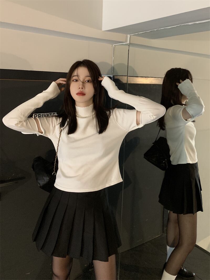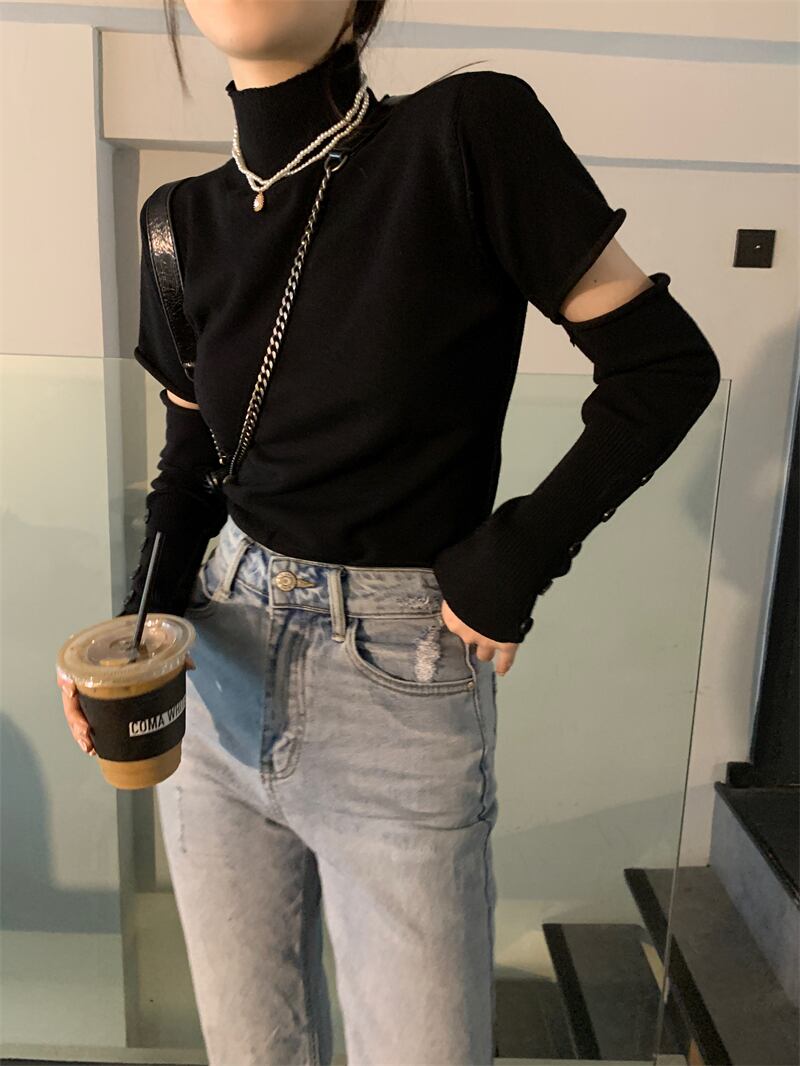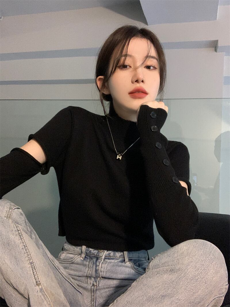 ハイネックオフショルダーセータートップス ショート丈 袖あり ドロップショルダー ハイネック オフショルダー スリム タイト 細身 ウール かわいい 大人可愛い カジュアル 大人 上品 おしゃれ お洒落 かっこいい 大人女子 ラブリー キュート 個性的 クール モード系 セクシー モダン 主役級 存在感 無地 秋 冬 10代 20代 30代 レディース 女性用 OL 通勤 学生 通学 デート お出かけ 休日 パーティー イベント リゾート 旅行 レストラン 着回し ファッション コーデ スタイル