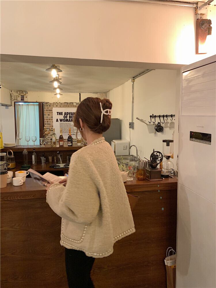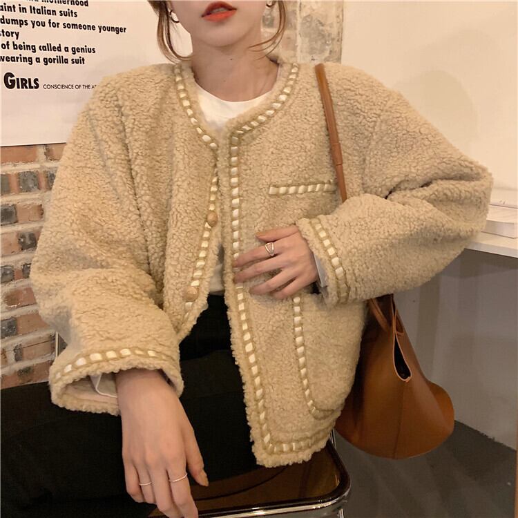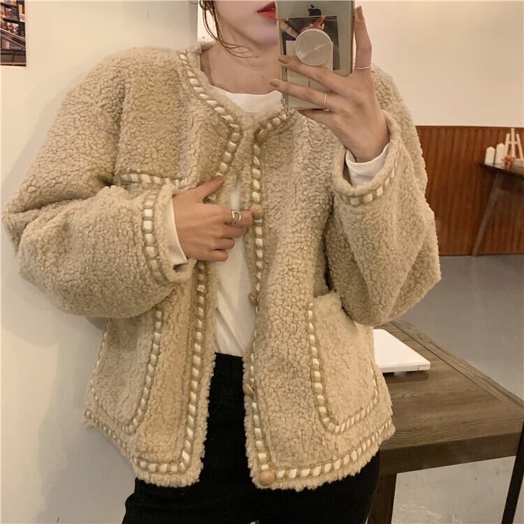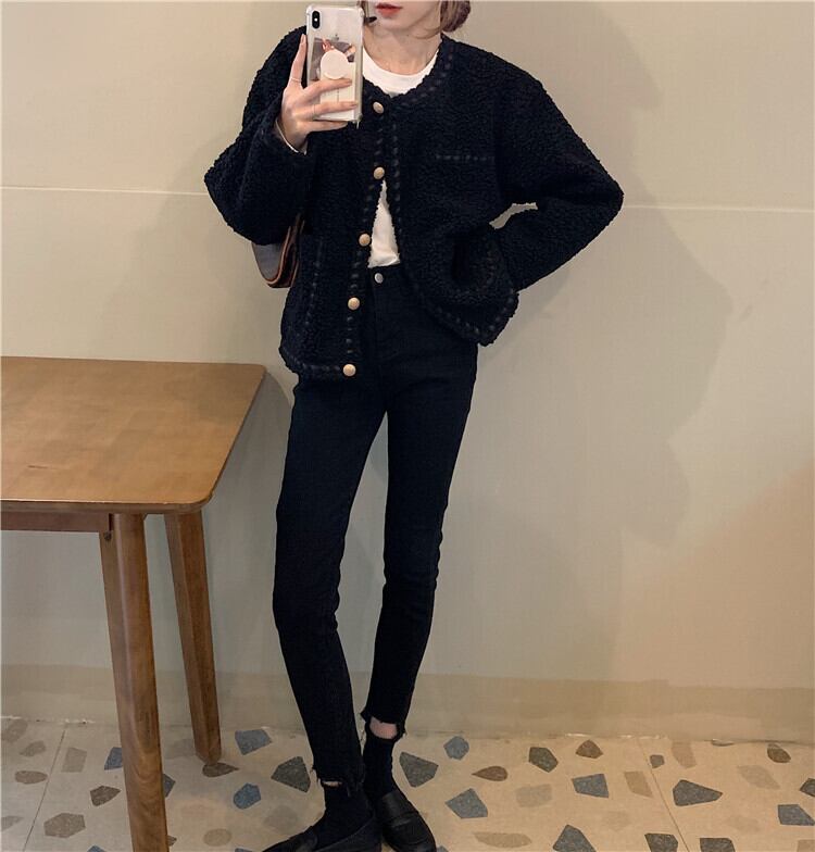 ラムウールステッチコート アウター ショート ショート丈 袖あり 長袖 ラウンドネック 前開き ニット 秋 冬 10代 20代 30代 40代 レディース 女性用 ママ オフィス OL 通勤 学生 通学 デート お出かけ 女子会 休日 パーティー イベント 旅行 ホテル ガーデン レストラン 着回し ファッション コーデ スタイル 暖かい 防寒 モテ トレンド 流行 インスタ映え イメチェン 好感度 イメージアップ 新入荷 目玉 おすすめ 新作 話題 今だけ 海外 黒 ブラック アプリコット