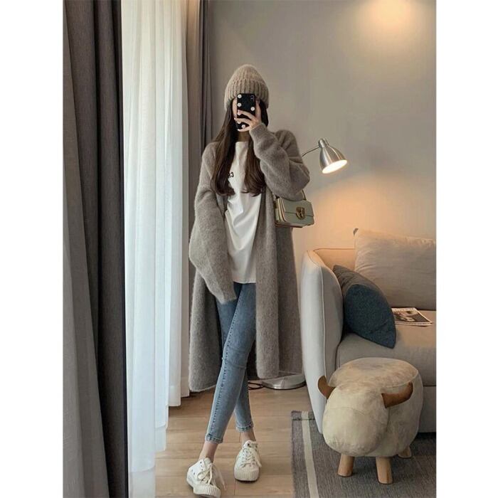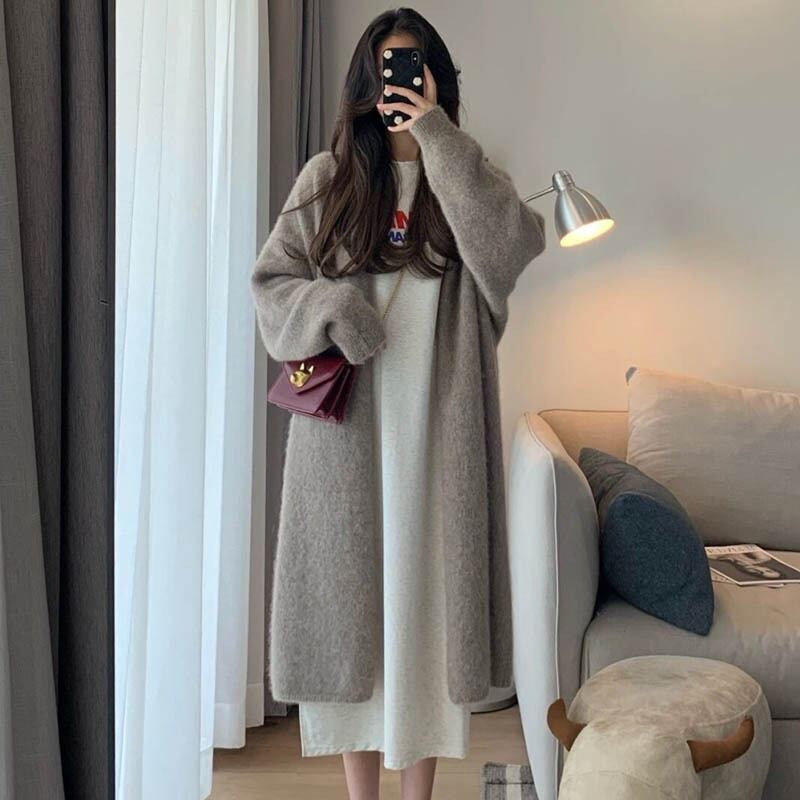 オーバーサイズ トッパーカーデ コーディガン ノーボタン トップス カーディガン 膝丈 膝下 ロング丈 長袖 ドロップショルダー 萌袖 ニット かわいい きれいめ シンプル カジュアル 上品 おしゃれ お洒落 こなれ感 ルーズ 無地 春 秋 冬 2021 レディース 女性用 ママ マタニティ 女の子 OL 通勤 学生 通学 デート お出かけ 公園デビュー 女子会 休日 着回し 普段使い 重ね着 韓国系 オルチャン コーデ 楽ちん 体系カバー フリーサイズ 大きめ ゆったり ゆる サイズ グレー