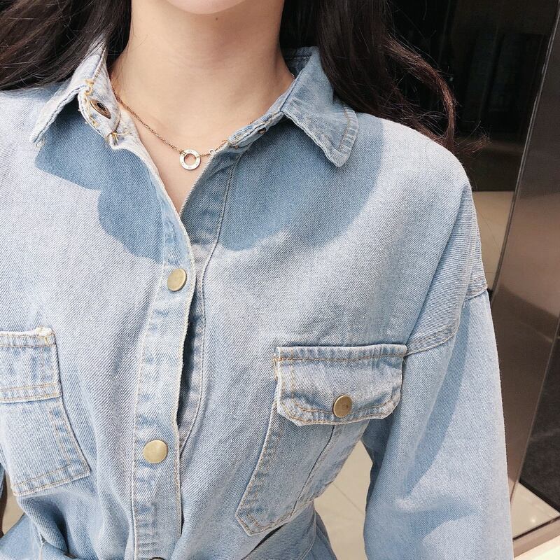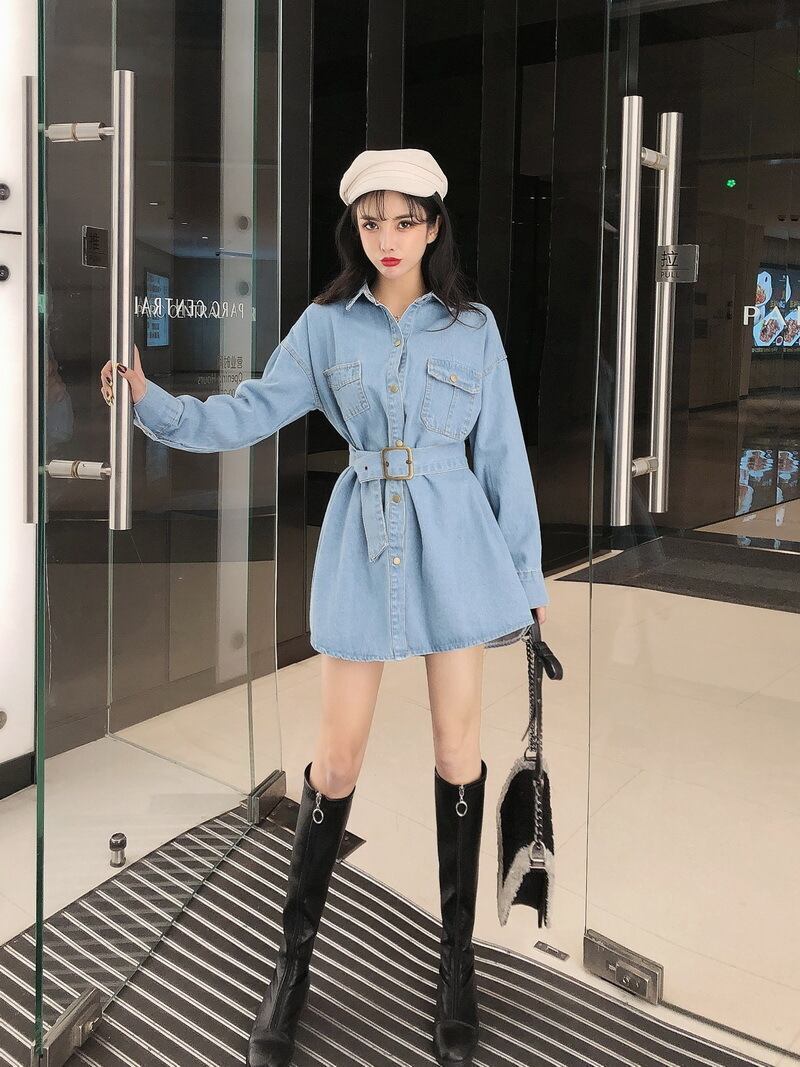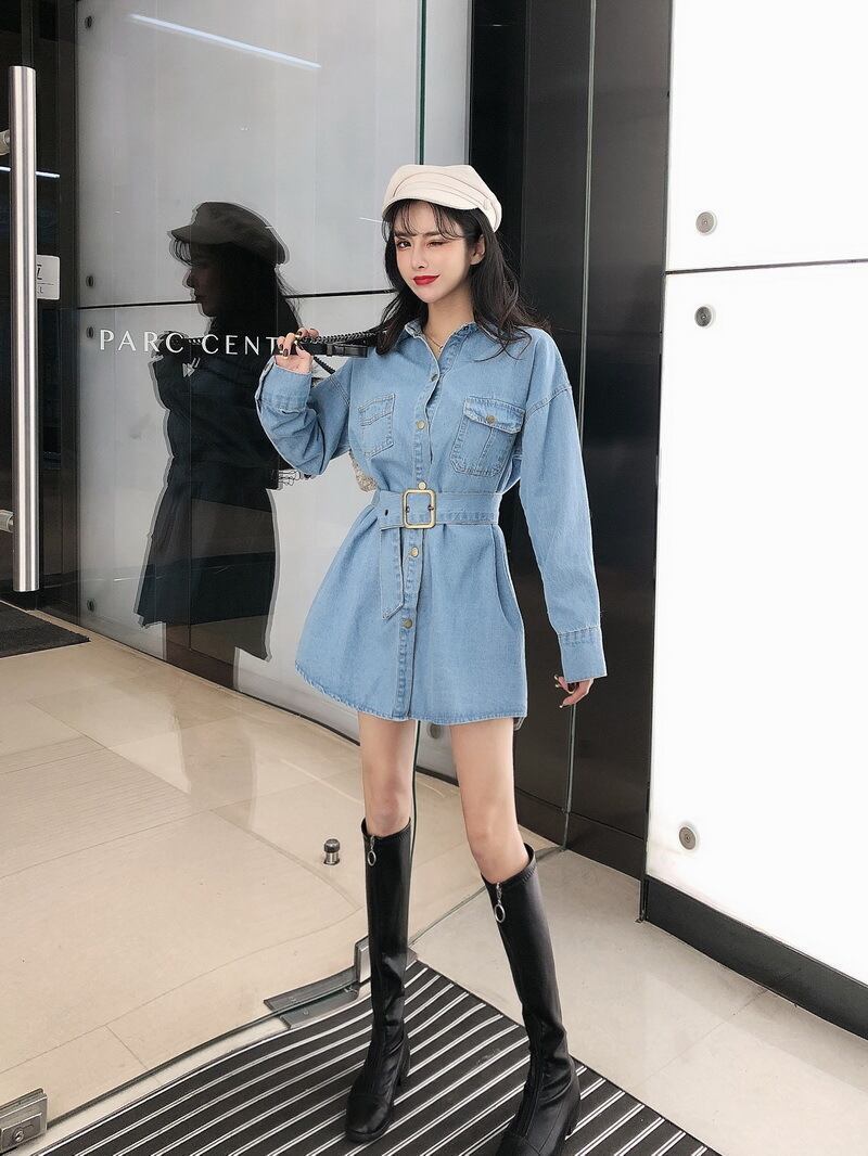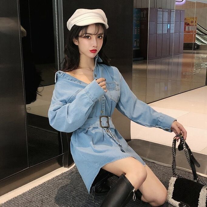 当店一押しのデニムワンピースが入荷しました!この一枚で今季のトレンドスタイルを手軽に手に入れられます。ミディアム丈のワンピースは、膝上から露出する脚がセクシーでありながら、襟付きのデザインが品の良さを演出します。デニム素材はカジュアル感がありつつ、程よい光沢感があって上品な印象を与えます。スタンダードなカラーの黒とブルーの2色展開で、どちらも合わせやすい万能アイテムです。女性らしいウエストマークができるベルト付きで、体形をカバーしつつスタイルアップも叶います。ボタン前開きで着脱も簡単です。学生やOL、主婦の方々にも大変人気で、デートや女子会、休日のカジュアルなお出かけにもぴったりです。あなたも、この一枚で上品かつカジュアルなスタイルを手に入れてみませんか?!