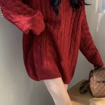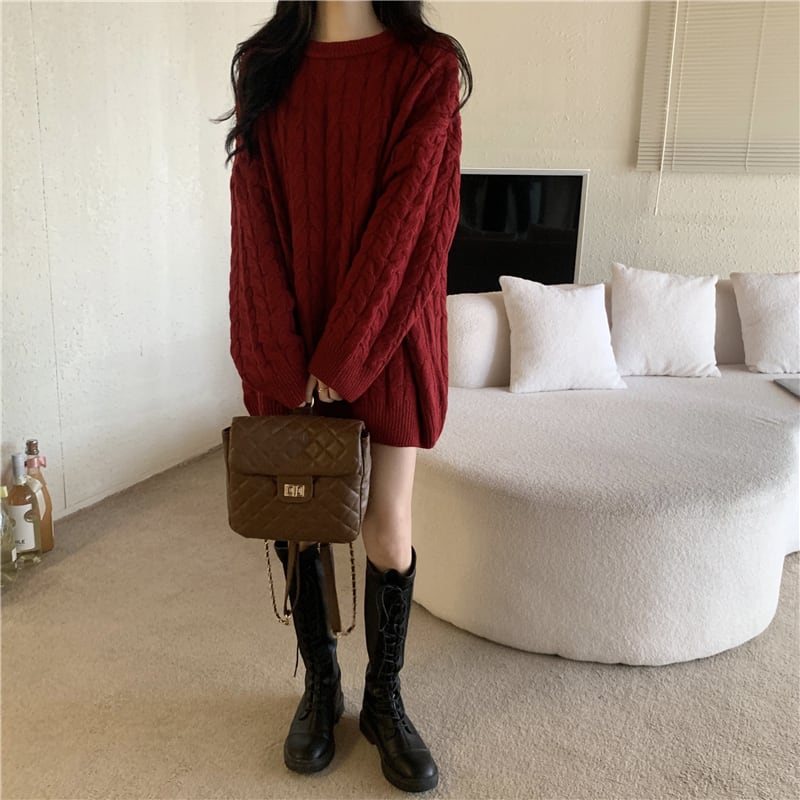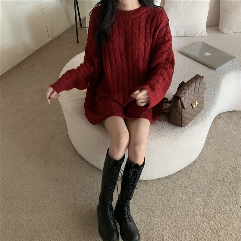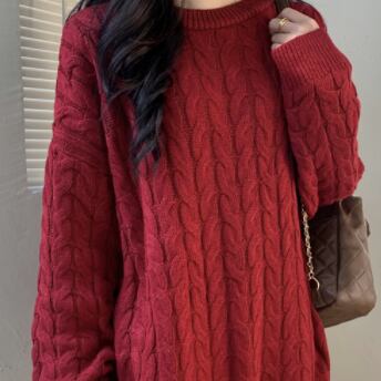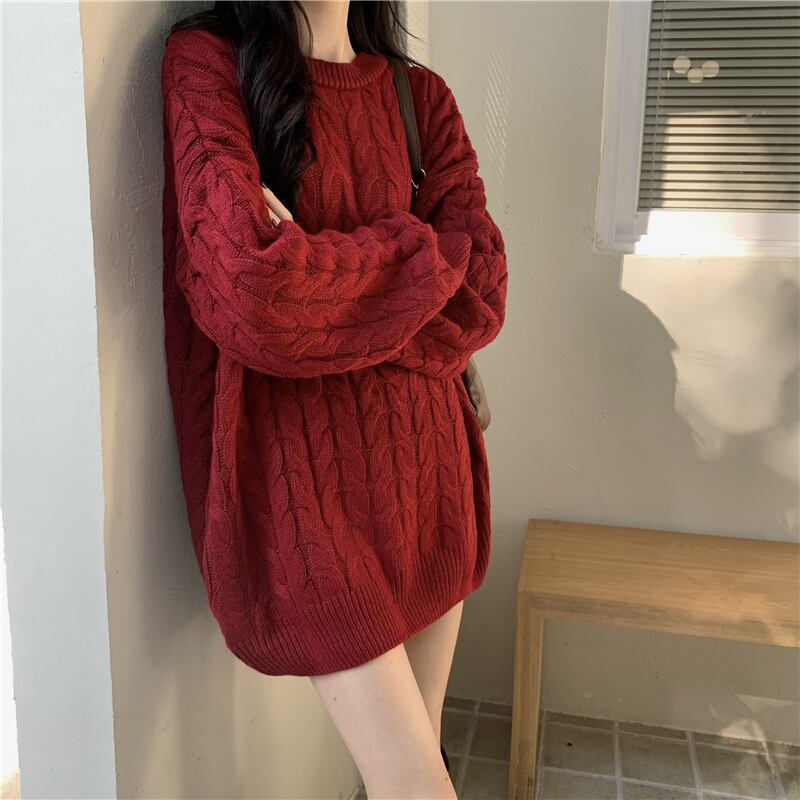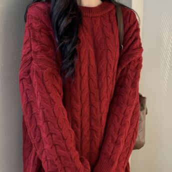 オーバーサイズ 縄編み 模様編み トップス アウター セーター プルオーバー チュニック ミディアム丈 長袖 ドロップショルダー 萌袖 クルーネック ケーブルニット ニット かわいい 大人可愛い きれいめ シンプル カジュアル 上品 おしゃれ こなれ感 春 秋 冬 2021 レディース 女性用 ママ 女の子 通勤 学生 通学 デート お出かけ 休日 着回し 普段使い 韓国系 オルチャン コーデ スタイル 楽ちん モテ 体系カバー 新作 フリーサイズ 大きめ ゆったり ゆる サイズ レッド 好感度