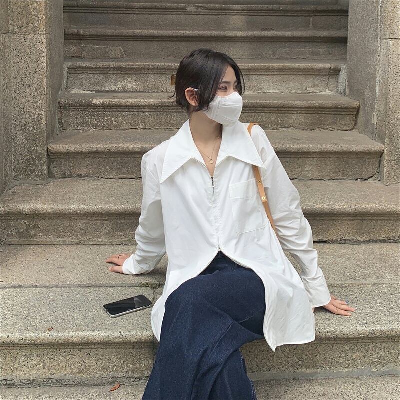 ビッグカラーブラウス トップス シャツ 長袖 Vネック かわいい 大人可愛い きれいめ おしゃれ お洒落 大人可愛い 大人女子 こなれ感 ラフ メンズライク ボーイッシュ スポーティー キュート ルーズ 個性的 主役級 存在感 抜け感 無地 春 秋 10代 20代 30代 40代 レディース 女性用 女の子 学生 デート お出かけ 女子会 お泊まり 休日 着回し 普段使い 韓国 韓国系 ファッション コーデ スタイル 楽ちん モテ 体系カバー 新作 定番 送料無料 流行 大きめ ビッグサイズ ゆったり