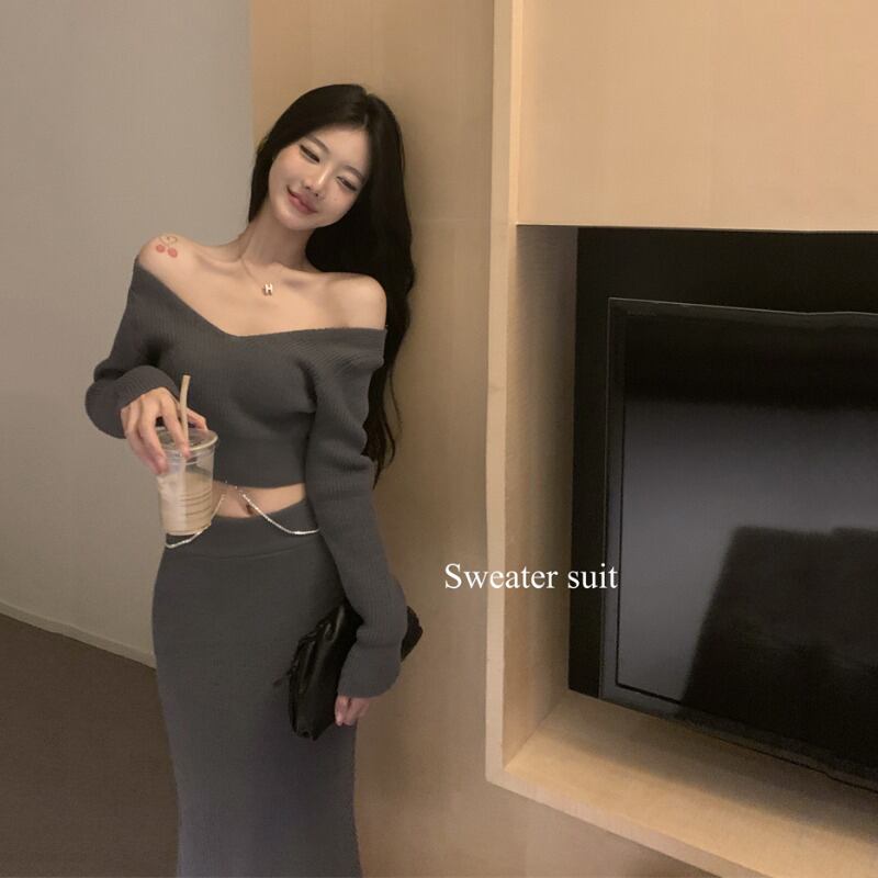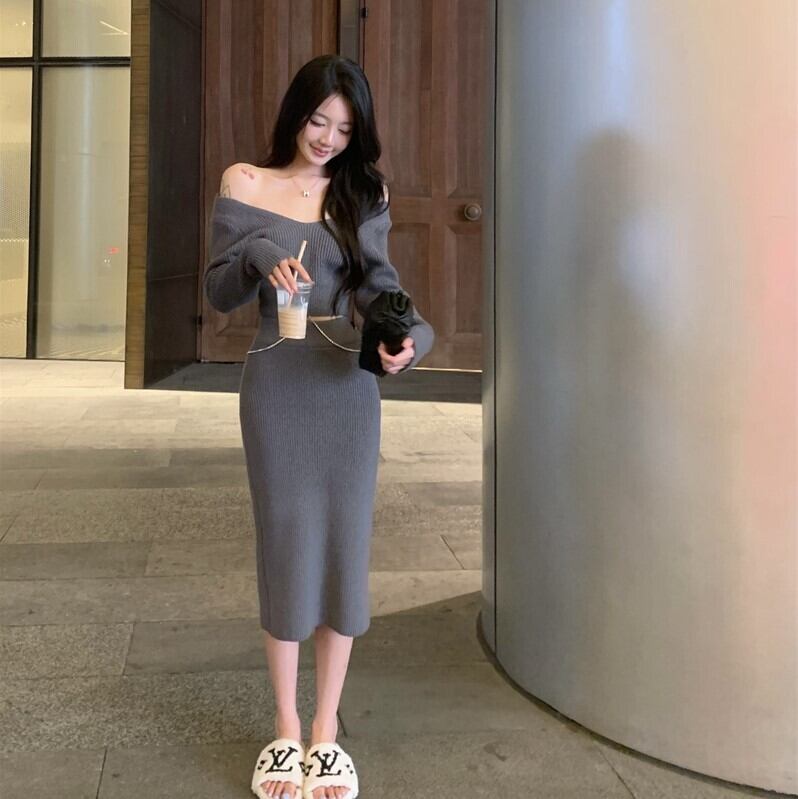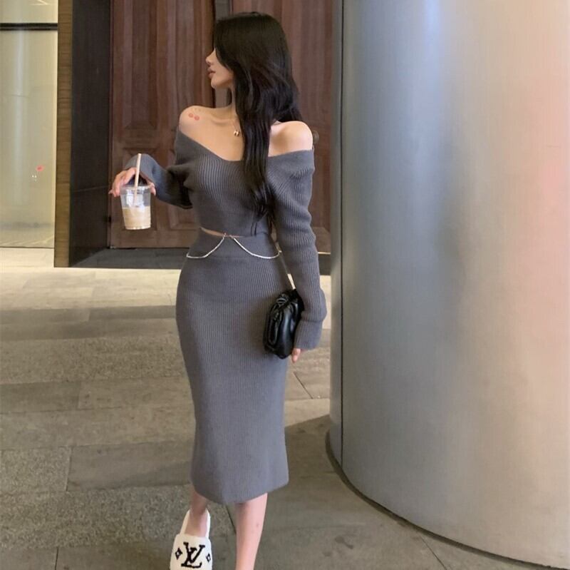 セット売り オフショルトップス タイトスカート グレー トップス ニットソー セーター カーディガン ミモレ ミモレ丈 長袖 Vネック スリム 細身 ストレート スマート かわいい きれいめ シンプル 大人 上品 おしゃれ 大人可愛い 大人女子 こなれ感 ラフ クール モード系 セクシー エレガント 無地 春 秋 冬 誕生日 謝恩会 二次会 ハロウィン クリスマス バレンタイン レディース 女性用 学生 通学 デート お出かけ 女子会 お泊まり 休日 アウトドア パーティー イベント リゾート 旅行 定番