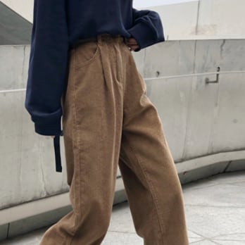コーデュロイパンツは、きれいめからカジュアルまで、幅広いスタイルに合わせることができます。ストレートパンツの Iラインシルエットが、美脚効果を発揮してくれます。無地デザインなので、どんなトップスとも合わせやすく、着回し力も抜群。大人可愛いデザインで、こなれ感を演出してくれます。また、コーデュロイ素材が暖かく、冬でも快適に過ごせます。