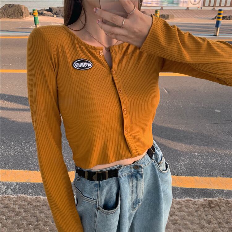 カーディガン シンプル トップス セーター ブラック 黒 ネイビー 紺 レッド 赤 イエロー 黄色 ミニ丈 ショート丈 袖あり 長袖 ラウンドネック スリム タイト 細身 シングルブレスト ボタン 大人女子 大人 上品 おしゃれ カジュアル レトロ レトロ風 こなれ感 ラフ 個性的 デザイン 主役級 存在感 スポーティー 無地 春 スプリング 秋 オータム 10代 20代 レディース 女性用 学生 通学 デート お出かけ 女子会 着回し 普段使い ワンサイズ