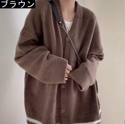 ニット カーディガン 魅せる トップス グレー 灰色 ブラウン 茶色 アプリコット ブルー 青 ピンク ミディアム丈 袖あり 長袖 Vネック ストレート シングルブレスト 大人女子 大人 上品 おしゃれ カジュアル レトロ レトロ風 こなれ感 ラフ ルーズ シルエット 個性的 デザイン 主役級 存在感 無地 秋 冬 10代 20代 30代 レディース 女性用 通勤 学生 通学 デート お出かけ 女子会 着回し 普段使い ワンサイズ パステルカラー