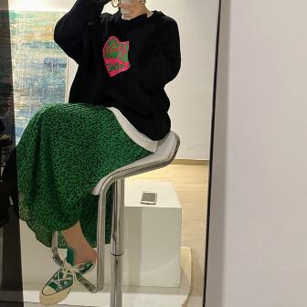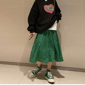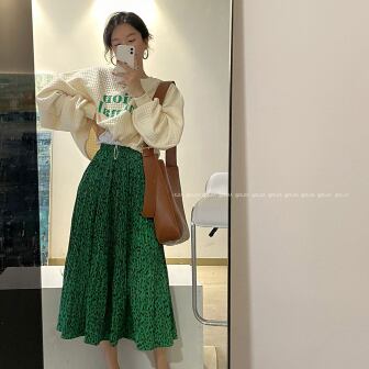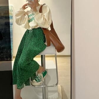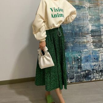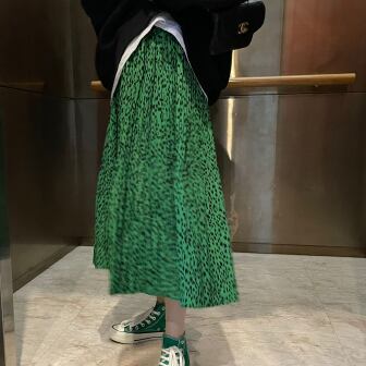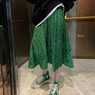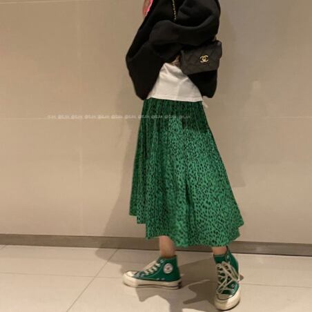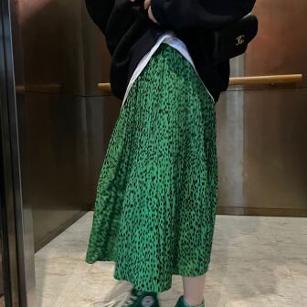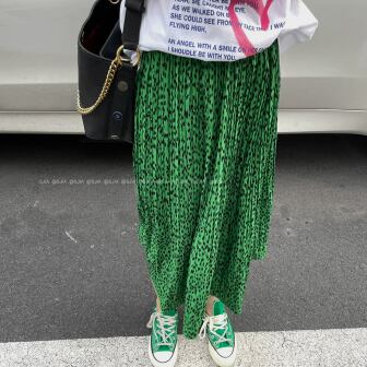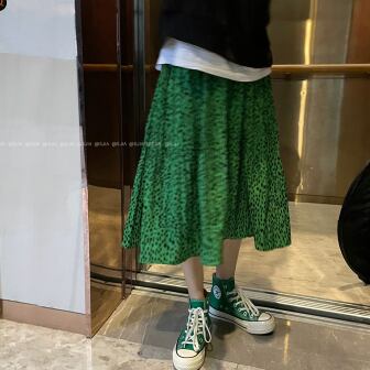 ロングスカート 魅せる スカート グリーン 緑 ロング丈 フレア Aライン 大人女子 大人 上品 おしゃれ カジュアル レトロ レトロ風 こなれ感 ラフ ルーズ シルエット 個性的 デザイン 主役級 存在感 柄 ヒョウ柄 秋 オータム 10代 20代 30代 40代 レディース 女性用 ママ 学生 通学 デート お出かけ 女子会 イベント リゾート 旅行 着回し 普段使い モテ トレンド ファッション コーデ 美脚 足長 細見え スタイル ワンサイズ