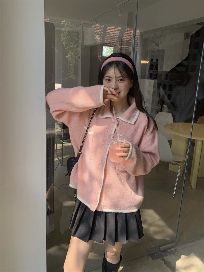カーディガン 技あり トップス セーター ブラック 黒 ホワイト 白 ピンク レギュラー丈 袖あり 長袖 襟付き ストレート シングルブレスト ボタン アクリル 大人女子 大人 上品 おしゃれ カジュアル レトロ レトロ風 こなれ感 ラフ ルーズ シルエット キュート ガーリー かわいい 女子 個性的 デザイン 主役級 存在感 無地 配色 秋 冬 10代 20代 レディース 女性用 学生 通学 デート お出かけ 女子会 着回し 普段使い 重ね着 ワンサイズ