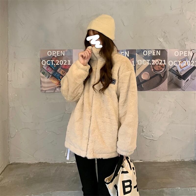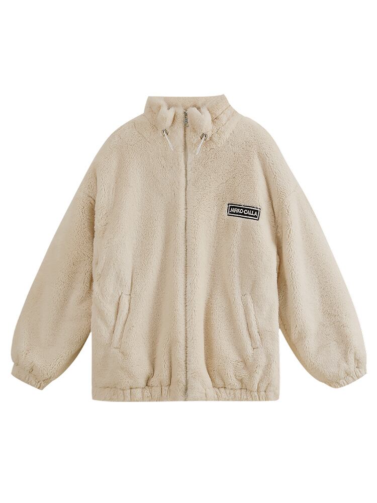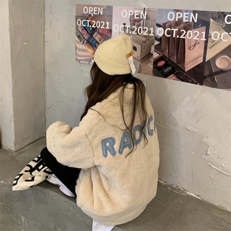 ふわもこのボア素材が見た目にも暖かで大人可愛い、ゆったりオーバーサイズのジップアップジャケットです。