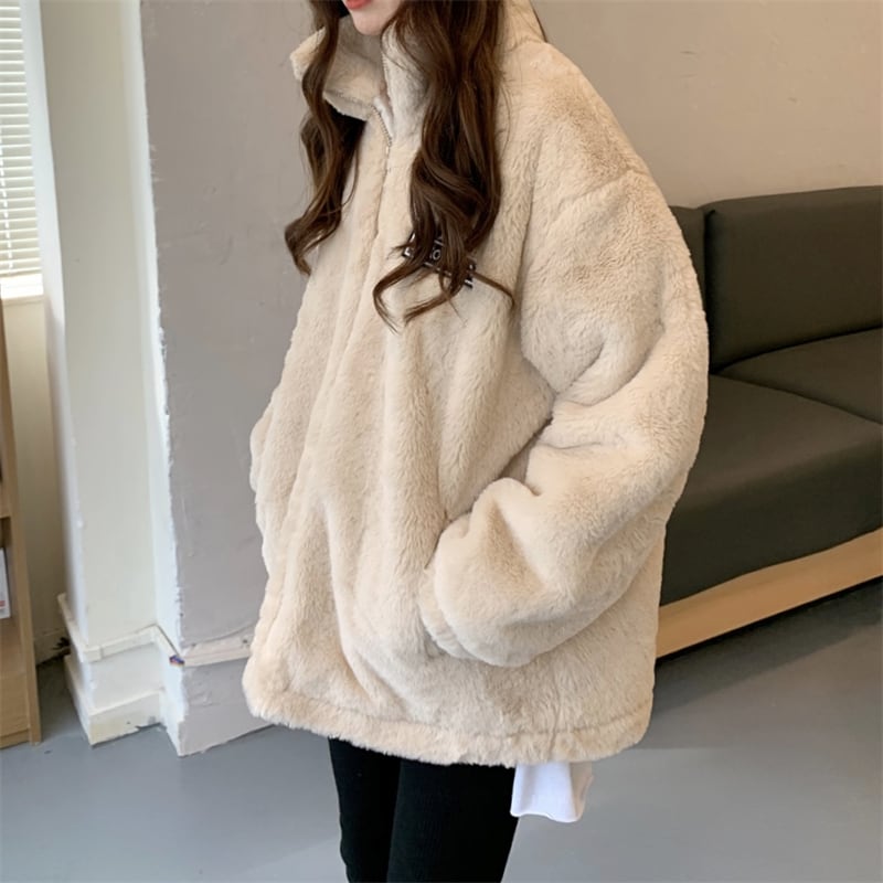 オーバーサイズ ふわもこ エコファー ボア キルティング裏地 チュニック丈 アウター コート ジャケット シャンパー ミディアム丈 袖あり 長袖 ドロップショルダー スタンドカラー ふわふわ ファスナー 前開き フェイクファー 大人可愛い シンプル カジュアル おしゃれ こなれ感 キュート 無地 冬 レディース 女性用 女の子 ママ 学生 通学 デート お出かけ 公園デビュー 休日 着回し 普段使い 重ね着 韓国系 オルチャン 楽ちん 防寒 体系カバー フリーサイズ 大きめ ホワイト ベージュ