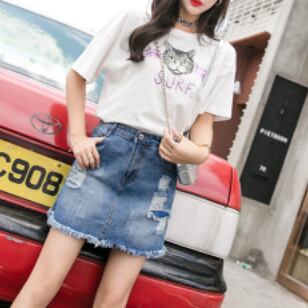 ダメージ加工がおしゃれなデニムミニスカートです。