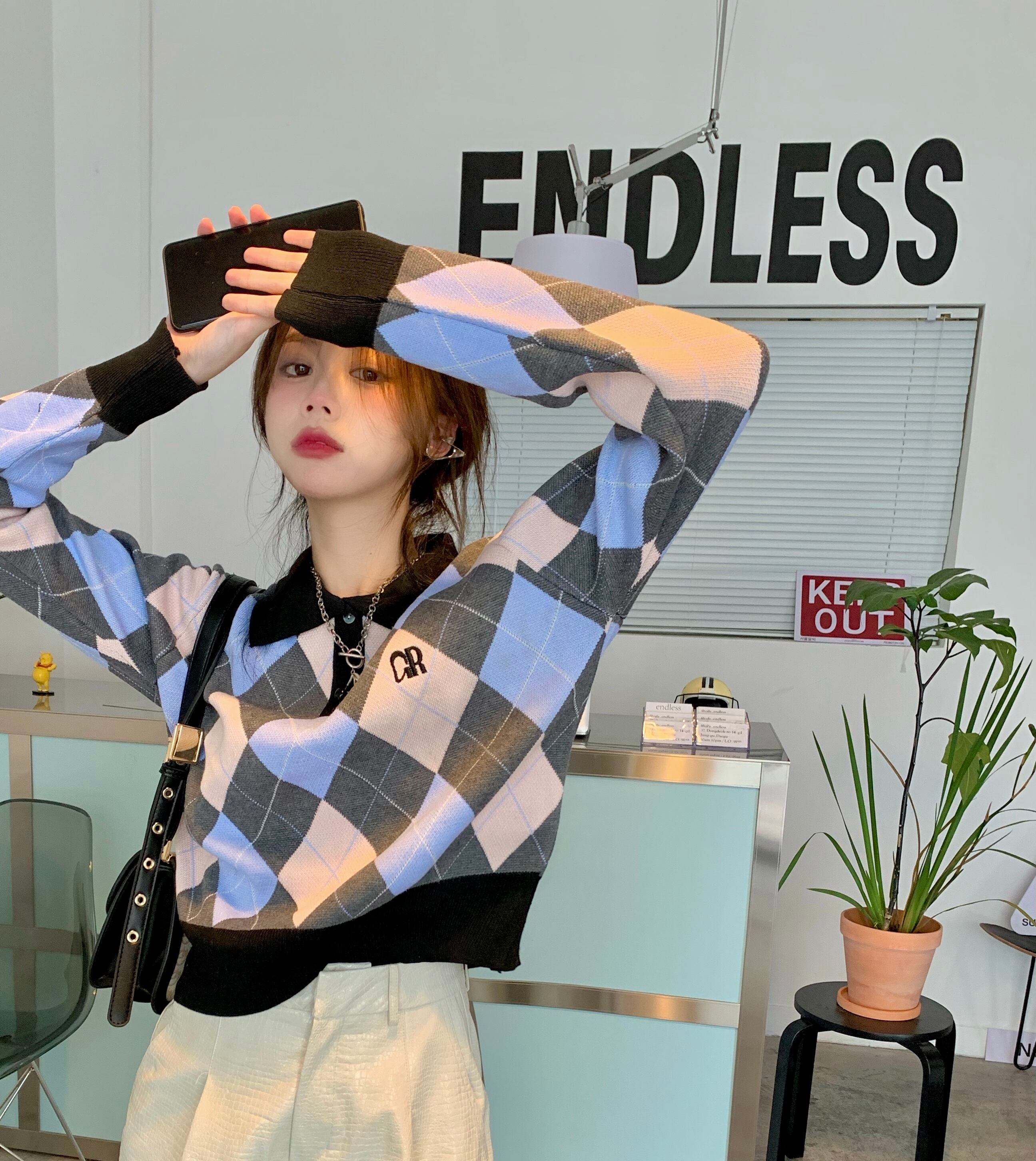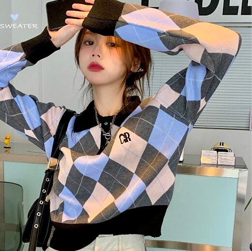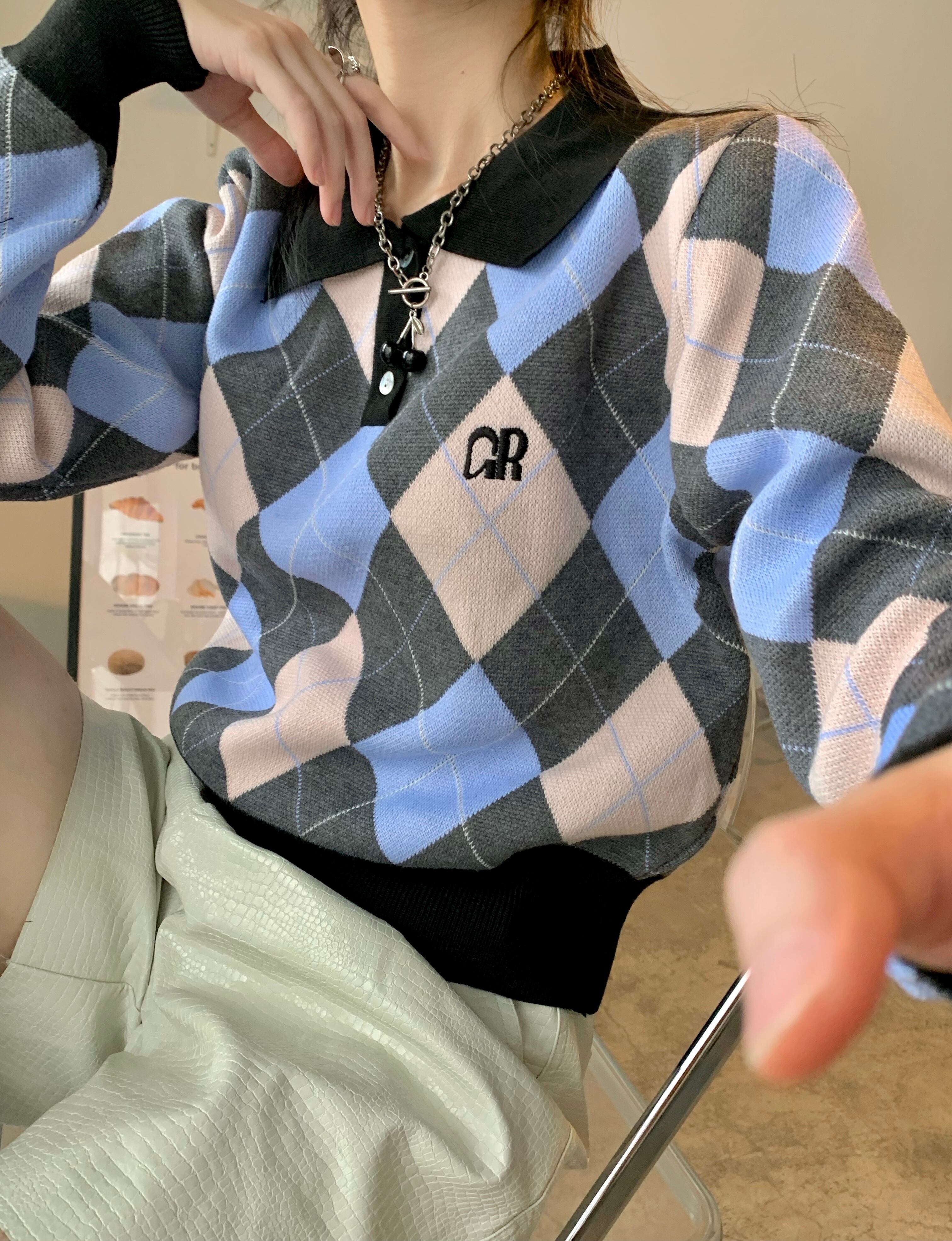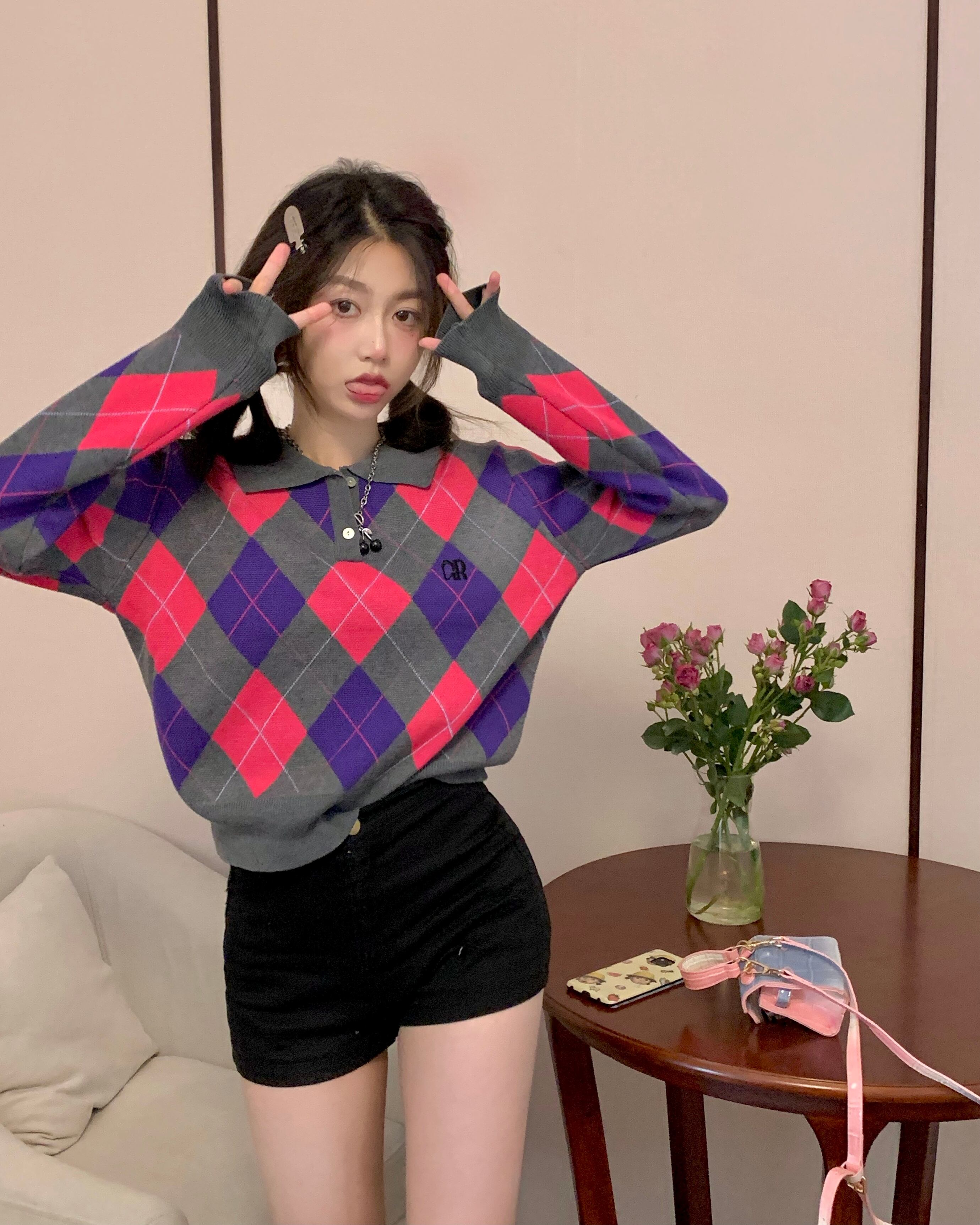 ダイヤ柄ポロカラーセータートップスは、大人可愛いキュートなデザインが魅力的な一枚です。ショート丈の袖ありの長袖で、ポロ襟がアクセントに。オフィス・通勤・学生・通学・デート・お出かけ・休日・アウトドア・リゾート・旅行まで、様々なシーンで活躍するポロカラーセータートップスです。