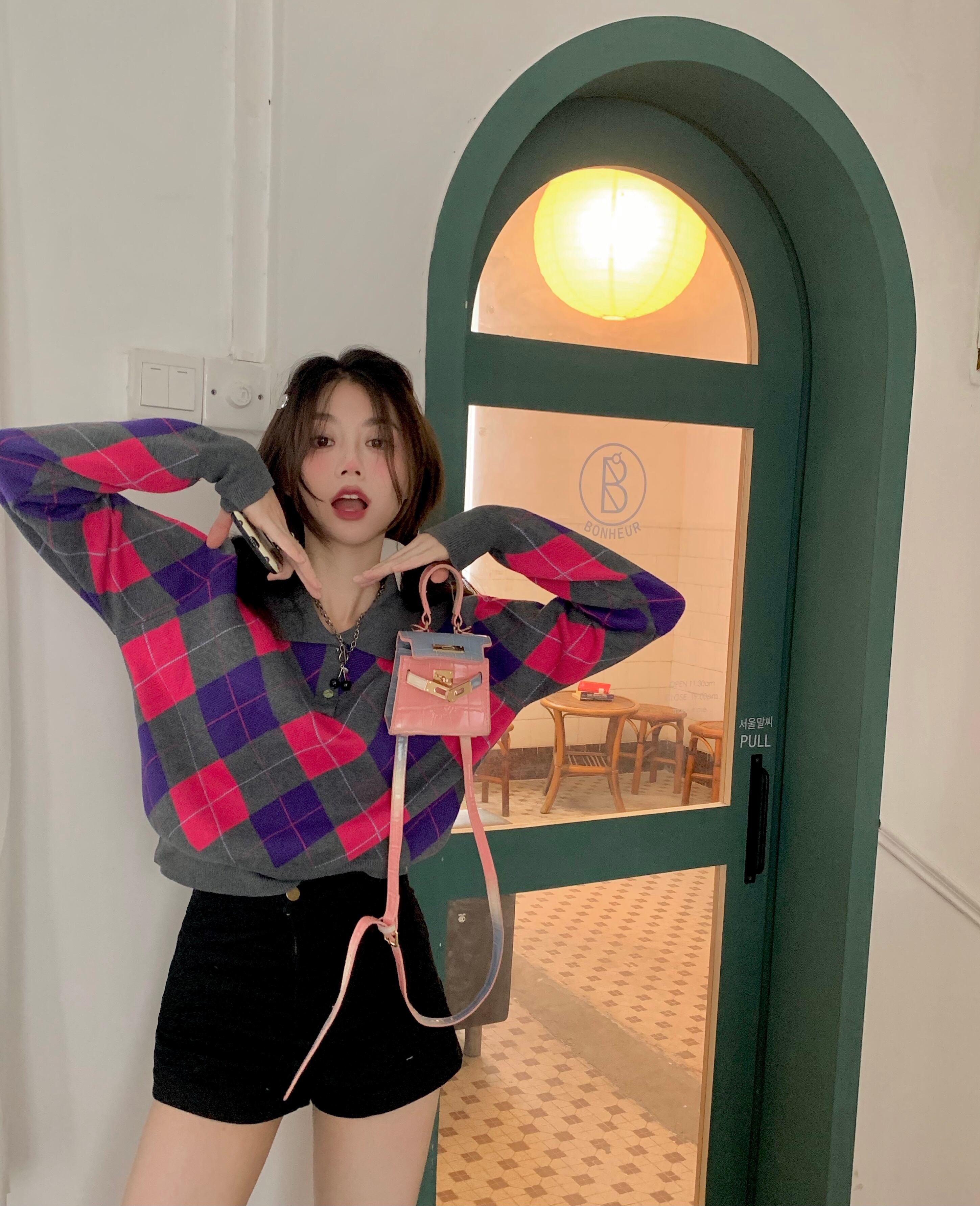ダイヤ柄は、流行に左右されない定番デザインでありながら、今年らしいトレンド感もあるので、イメージアップやイメチェンにぴったり!カーキ、ピンク、フクシアブルーの3色展開なので、お好みのカラーをお選びください。