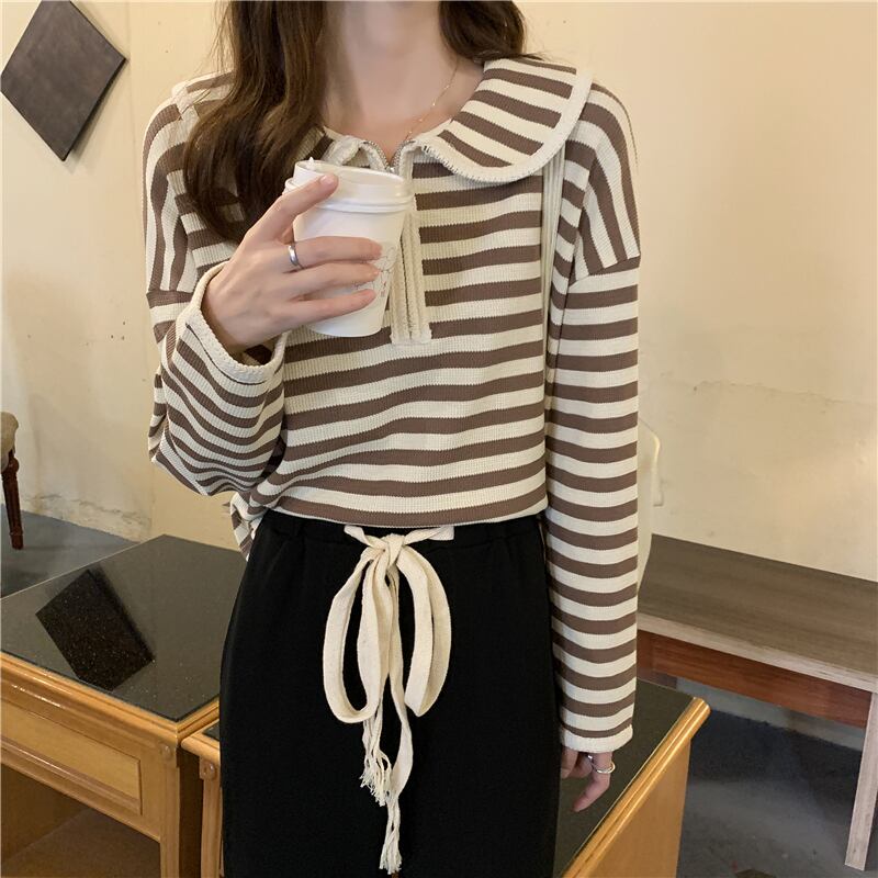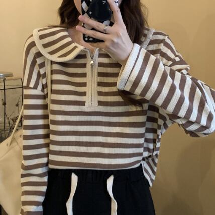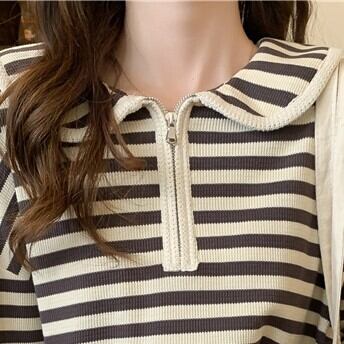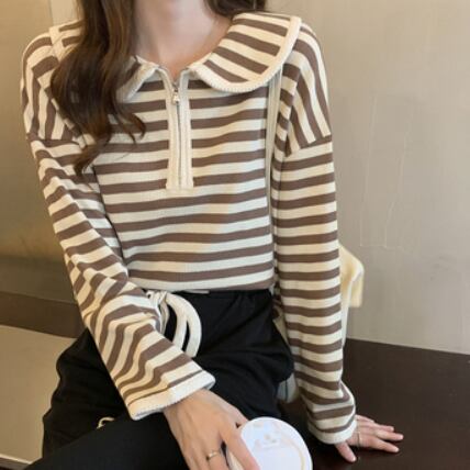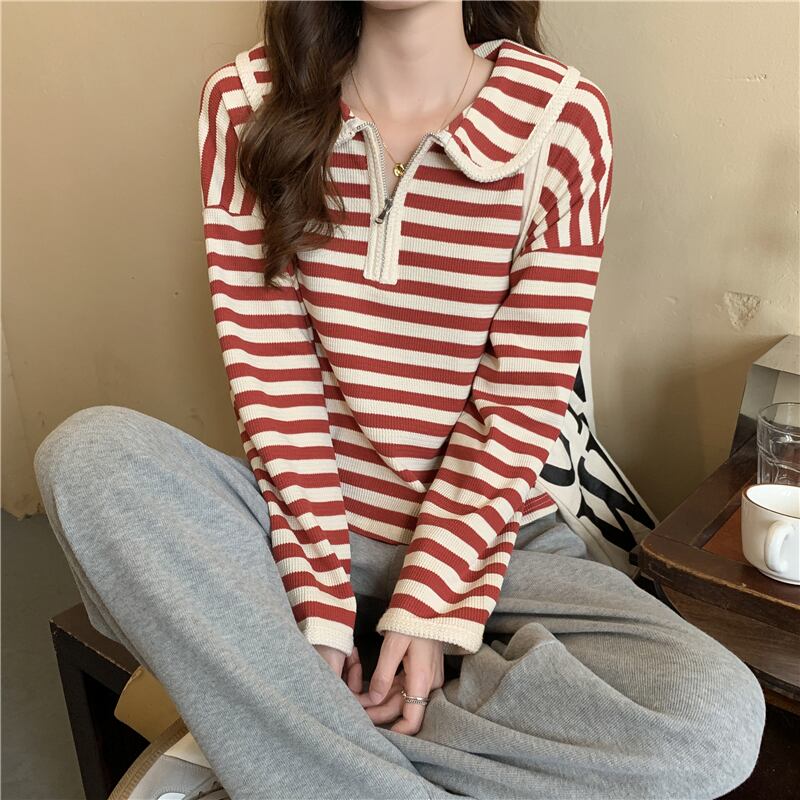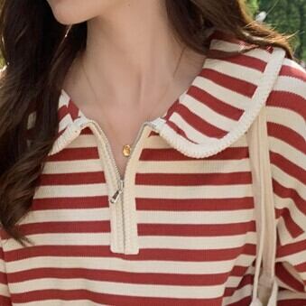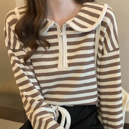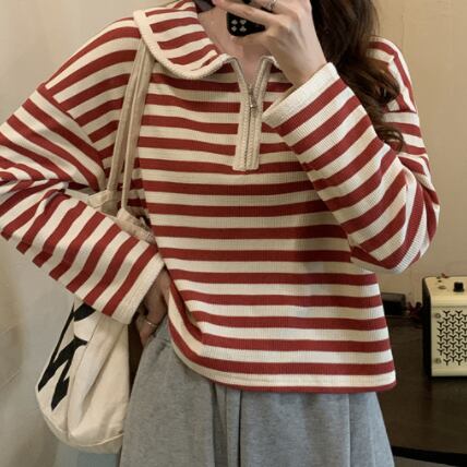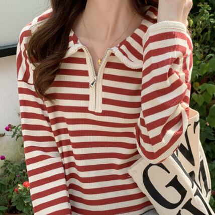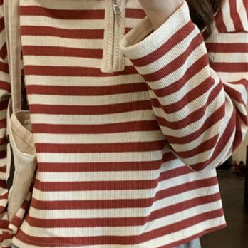 プルオーバー トップス Tシャツ カットソー セーター 赤 レッド 茶色 ブラウン ミディアム丈 長袖 襟付き ストレート ファスナー バイピング かわいい 大人可愛い きれいめ シンプル カジュアル 大人 おしゃれ レトロ 大人女子 こなれ感 ラフ ルーズ 個性的 存在感 抜け感 ボーダー 秋 冬 誕生日 母の日 2021 レディース ママ 通勤 通学 デート お出かけ 女子会 休日 旅行 着回し 普段使い 重ね着 お揃い 双子 韓国系 コーデ 楽ちん 新作 フリーサイズ ゆったり 色展開