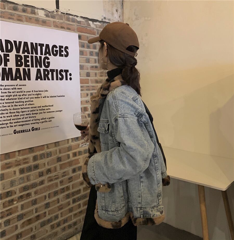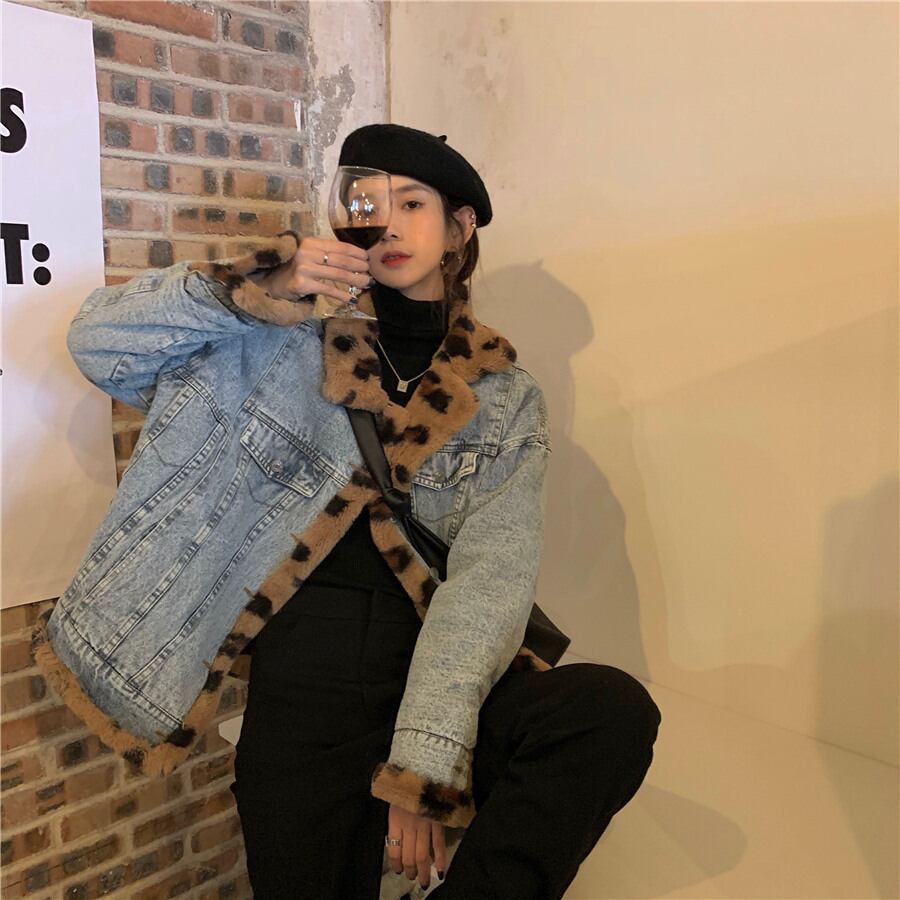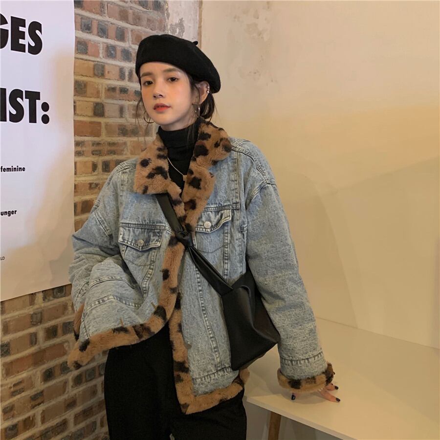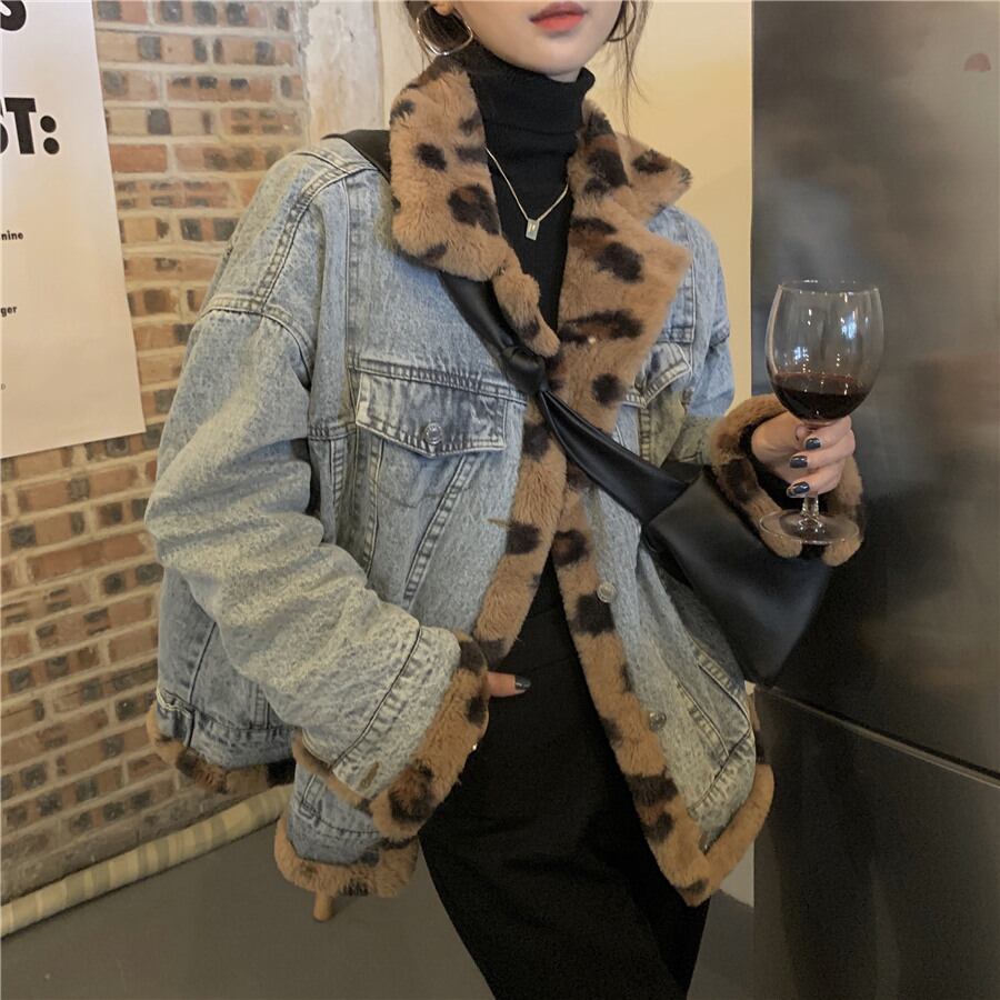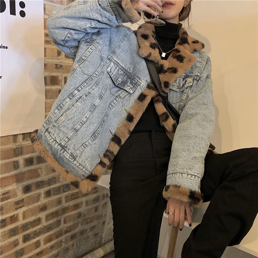 デニムジャケット 魅せる アウター コート ジャケット ミディアム丈 袖あり 長袖 襟付き シングルブレスト ボタン ポケット ファー ふわふわ 2way リバーシブル 大人女子 大人 上品 おしゃれ かっこいい クール カジュアル レトロ レトロ風 こなれ感 ラフ ルーズ シルエット 個性的 デザイン 主役級 存在感 柄 ヒョウ柄 秋 オータム 冬 ウインター 10代 20代 30代 レディース 女性用 通勤 学生 通学 デート お出かけ 女子会 着回し 普段使い 暖かい 防寒 S M