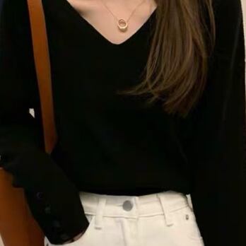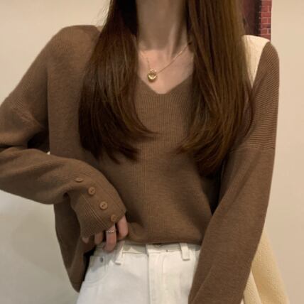 このVネックセーターは、シンプルなデザインが印象的。黒、グレー、ブラウン、アプリコットと、カジュアルからきれいめ、レトロ、主役級の要素を取り入れ、幅広いスタイルに合わせることができます。