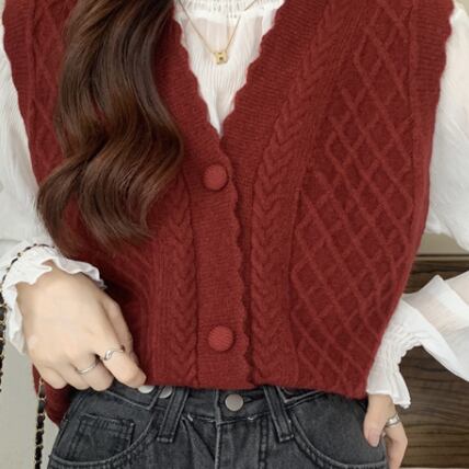 ベスト トップス セーター ミディアム丈 袖なし Vネック 白 ホワイト 赤 レッド 茶色 ブラウンストレート ふわふわ ボタン ウール 薄手 かわいい 大人可愛い きれいめ シンプル カジュアル 大人 おしゃれ レトロ 大人女子 こなれ感 キュート ルーズ 存在感 抜け感 無地 春 秋 2021 10代 20代 通勤 通学 デート お出かけ 女子会 休日 着回し 普段使い 重ね着 お揃い 双子 ファッション コーデ スタイル 楽ちん 暖かい 新作 トレンド フリーサイズ 色展開