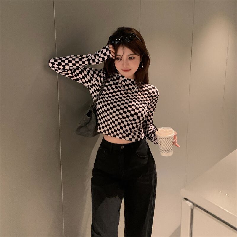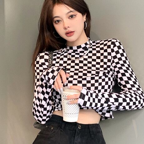 商品名にもある通り、チェック柄がおしゃれなショートTシャツが登場しました!スマートなシルエットでフィット感もよく、可愛いだけじゃない大人の女性にぴったりです。さまざまなシーンに合わせてコーディネートが楽しめ、長袖で季節感も出せます。シンプルなデザインだからこそ、アウターや小物と組み合わせるのもオシャレの一つ。きれいめからカジュアルまで、幅広いスタイルに取り入れてみて。韓国系ブランドならではの品質とデザイン性が、あなたを美しく彩ります。