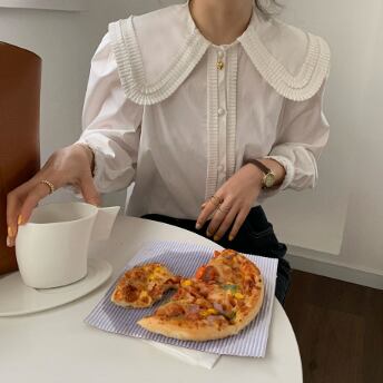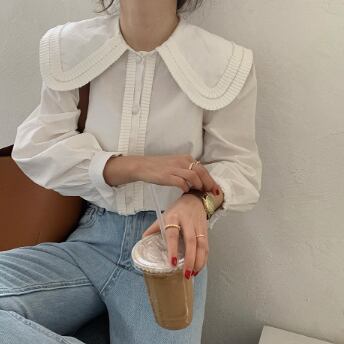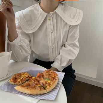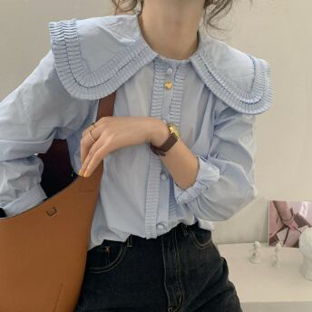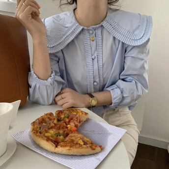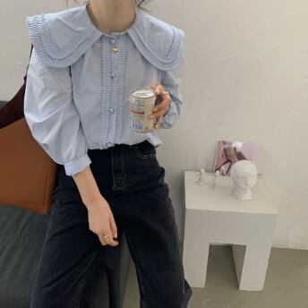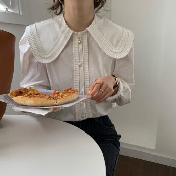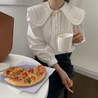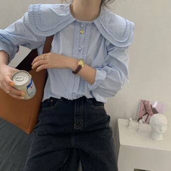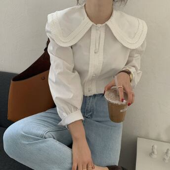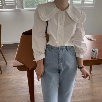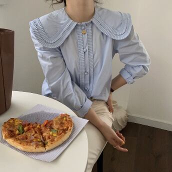 大きい襟がかわいい長そでブラウスです。