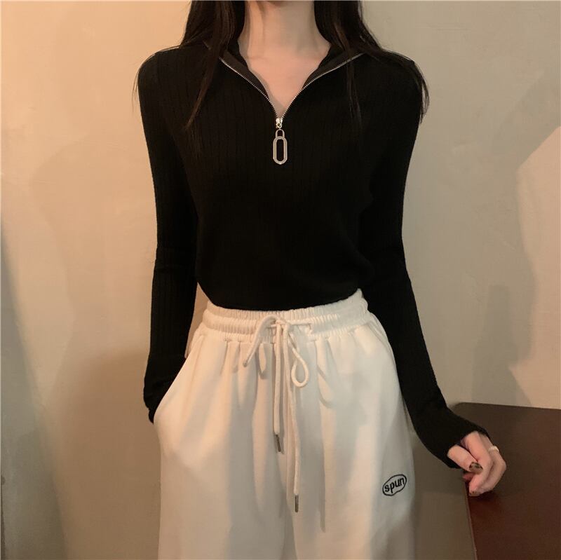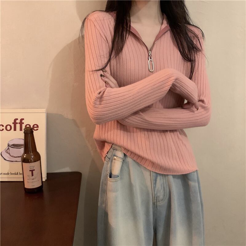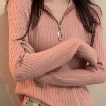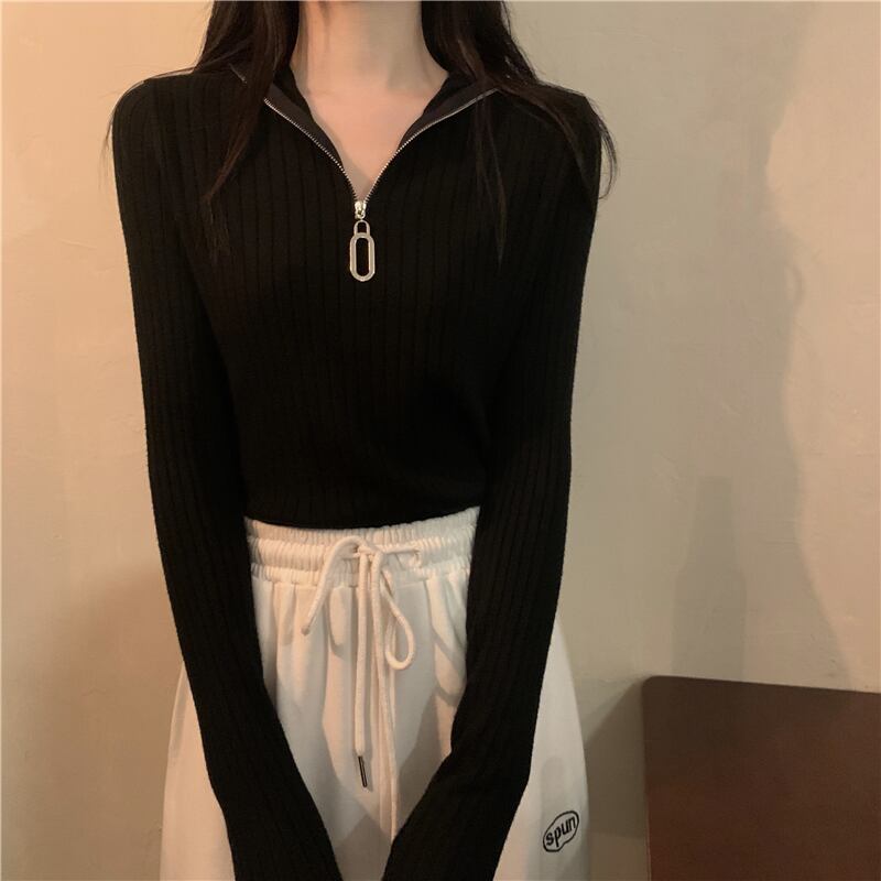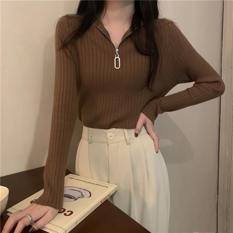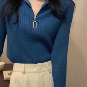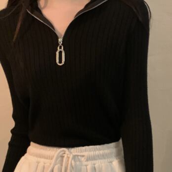 トップス セーター 袖あり 長袖 Vネック タイト 細身 ファスナー リブ かわいい 大人可愛い シンプル おしゃれ お洒落 大人可愛い 大人女子 キュート ガーリー 主役級 存在感 無地 春 秋 冬 10代 20代 30代 レディース 女性用 女の子 学生 通学 デート お出かけ 女子会 お泊まり 休日 着回し 普段使い 重ね着 韓国 韓国系 オルチャン ファッション コーデ モテ 新作 定番 送料無料 トレンド 流行 インスタ映え インポート 海外 人気 着痩せ 合わせやすい スタイルアップ