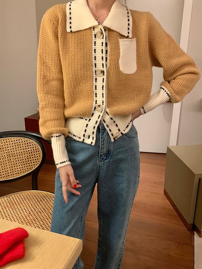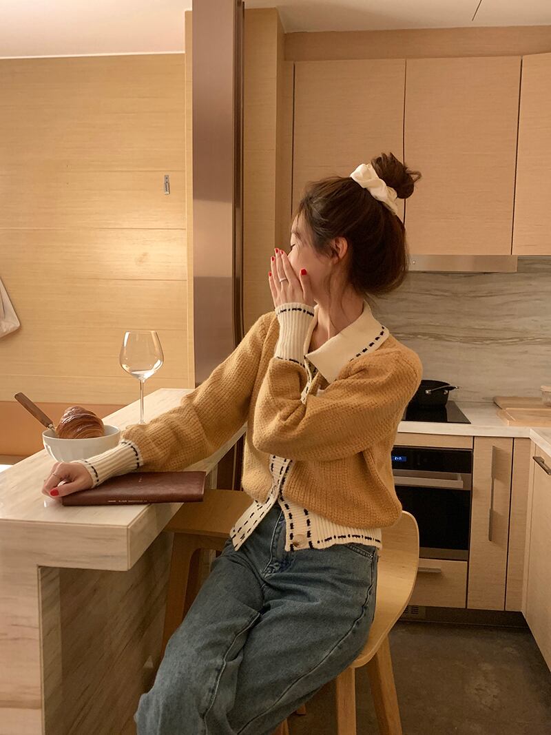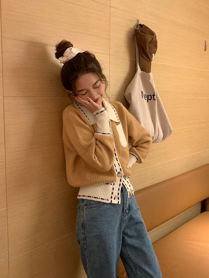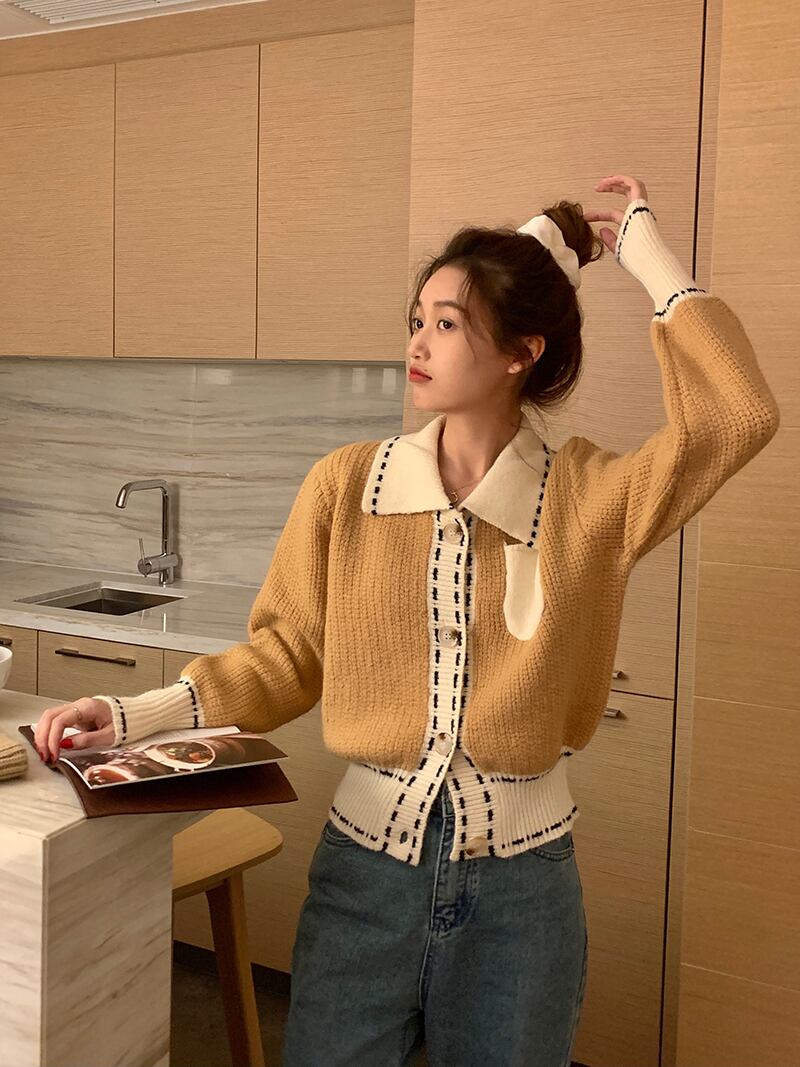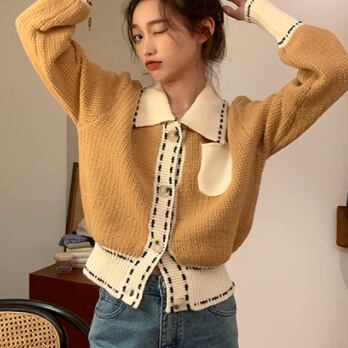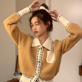 トップス アウター セーター カーディガン ショート ショート丈 長袖 ボリューム袖 Vネック 襟付き かわいい 大人可愛い おしゃれ お洒落 レトロ 大人可愛い 大人女子 キュート ガーリー 個性的 主役級 存在感 春 秋 冬 10代 20代 30代 レディース 女性用 女の子 学生 デート お出かけ 女子会 休日 着回し 重ね着 韓国 韓国系 ファッション コーデ スタイル 暖かい モテ 新作 定番 送料無料 トレンド 流行 インスタ映え インポート 海外 ヴィンテージ パッチワーク 人気