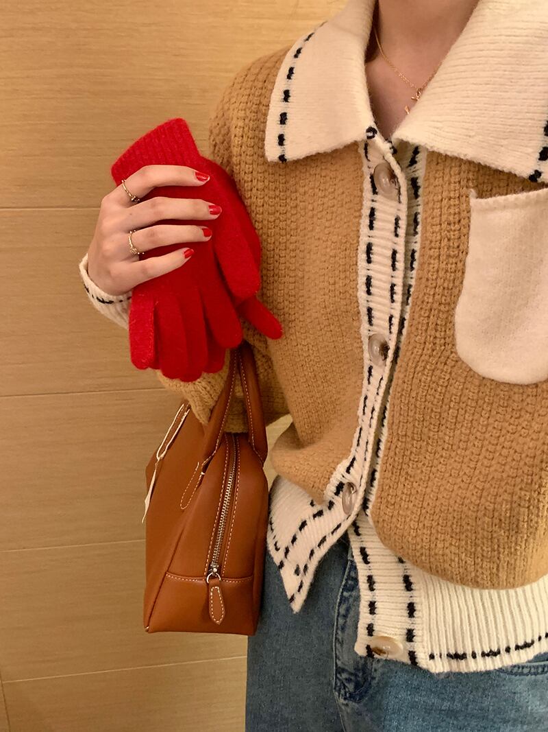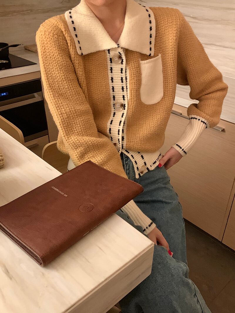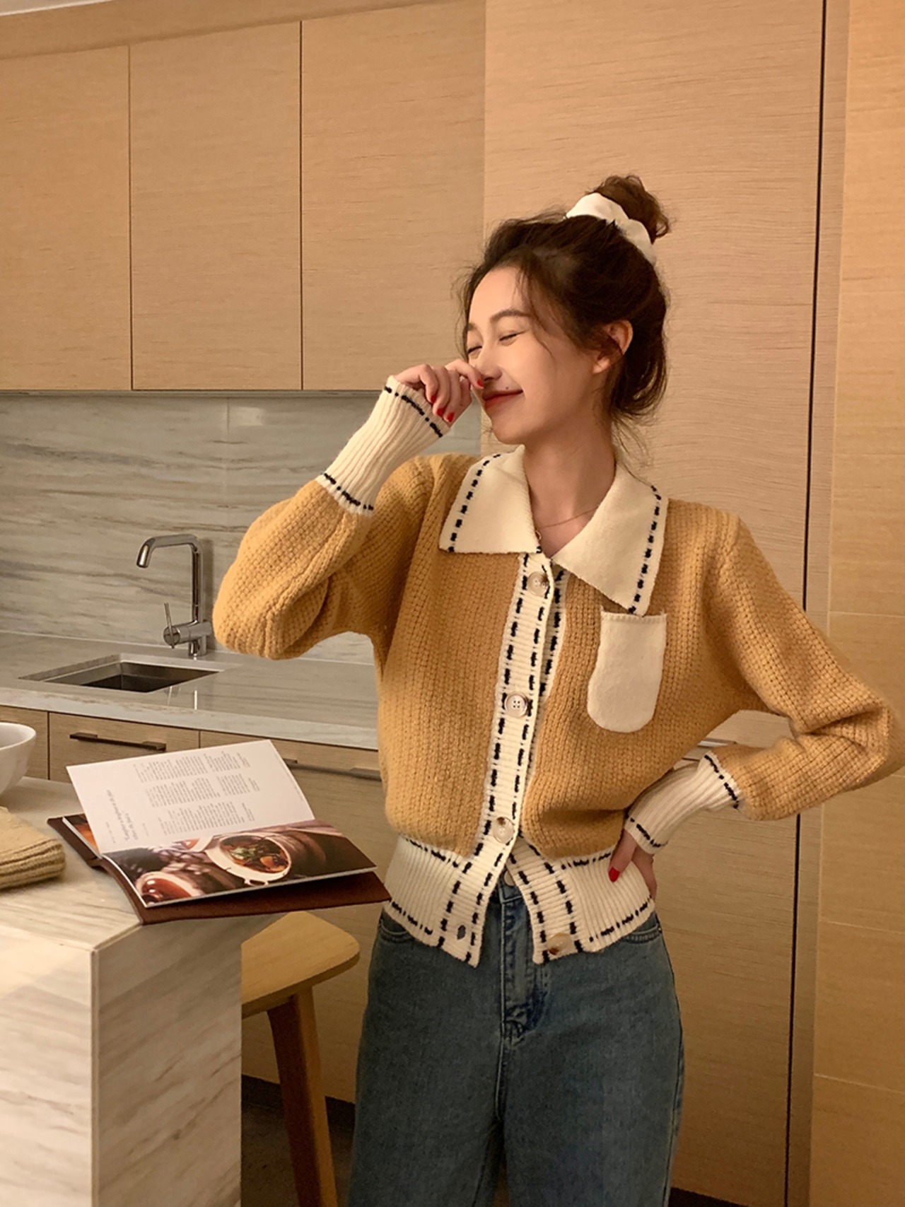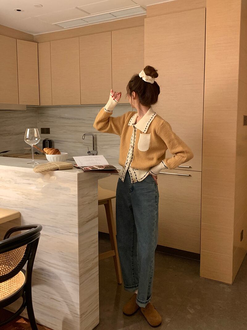 トップス アウター セーター カーディガン ショート ショート丈 長袖 ボリューム袖 Vネック 襟付き かわいい 大人可愛い おしゃれ お洒落 レトロ 大人可愛い 大人女子 キュート ガーリー 個性的 主役級 存在感 春 秋 冬 10代 20代 30代 レディース 女性用 女の子 学生 デート お出かけ 女子会 休日 着回し 重ね着 韓国 韓国系 ファッション コーデ スタイル 暖かい モテ 新作 定番 送料無料 トレンド 流行 インスタ映え インポート 海外 ヴィンテージ パッチワーク 人気