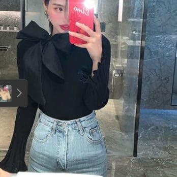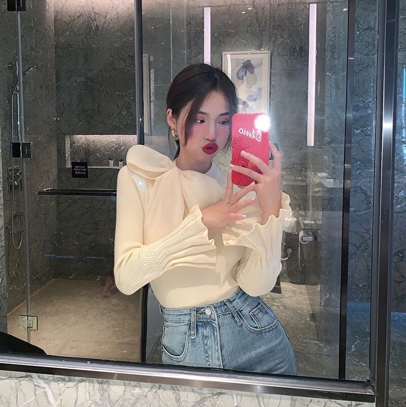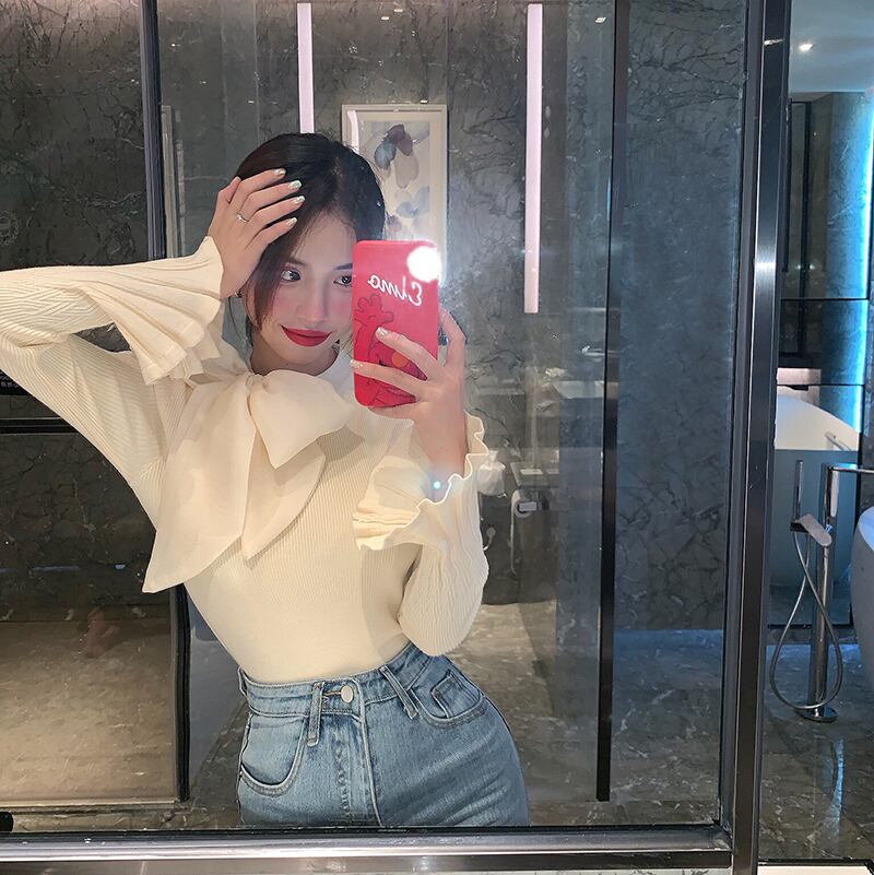大きいリボンがポイントのセーターです。