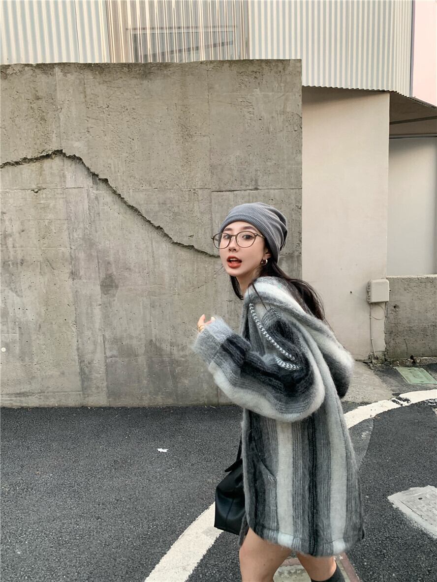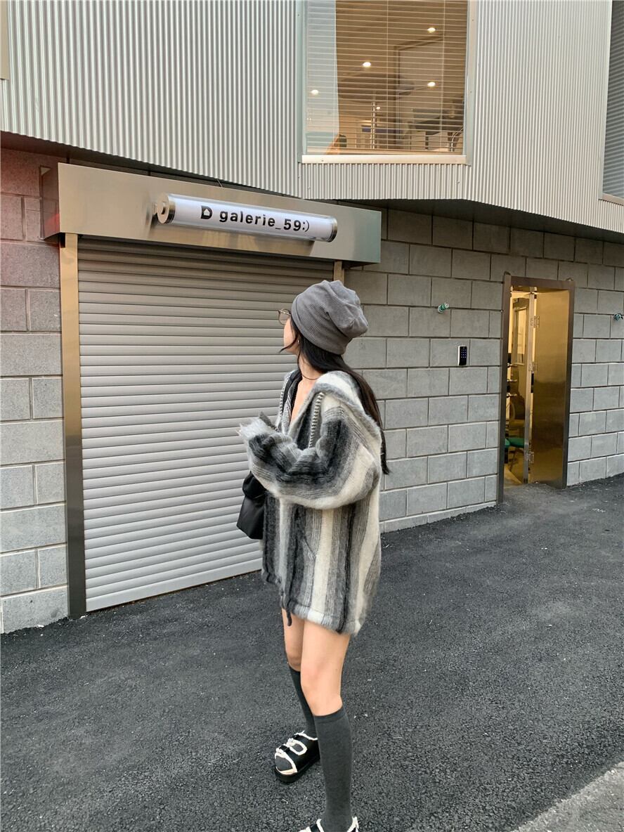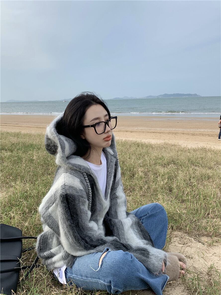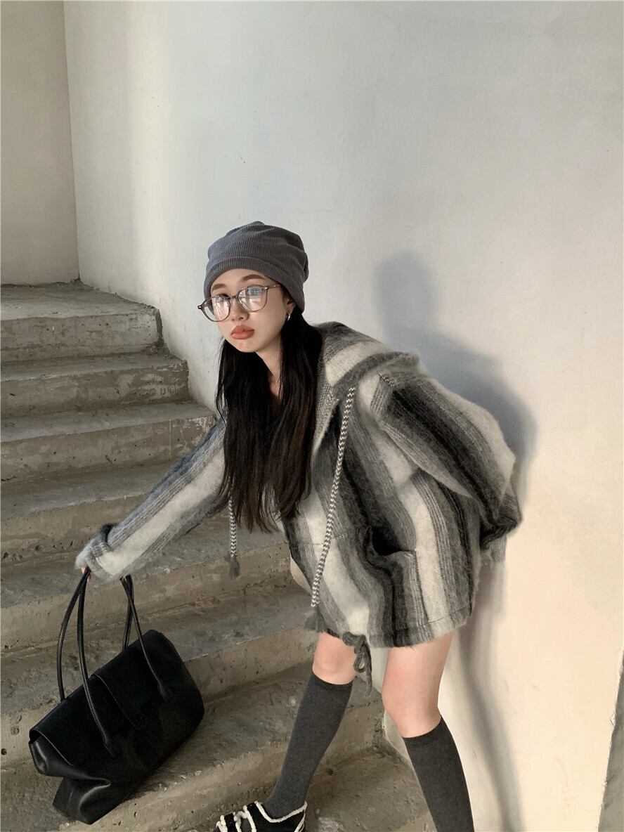 フード付きニット トップス セーター 長袖 Vネック かわいい 大人可愛い おしゃれ お洒落 かっこいい 大人可愛い 大人女子 こなれ感 ラフ メンズライク ボーイッシュ キュート ガーリー ルーズ 個性的 クール 主役級 存在感 抜け感 ストライプ 春 秋 冬 10代 20代 30代 レディース 女性用 女の子 学生 通学 デート お出かけ 女子会 お泊まり 休日 着回し 普段使い 重ね着 韓国 韓国系 ファッション コーデ スタイル 楽ちん 暖かい モテ 体系カバー 送料無料 トレンド 流行 大きい