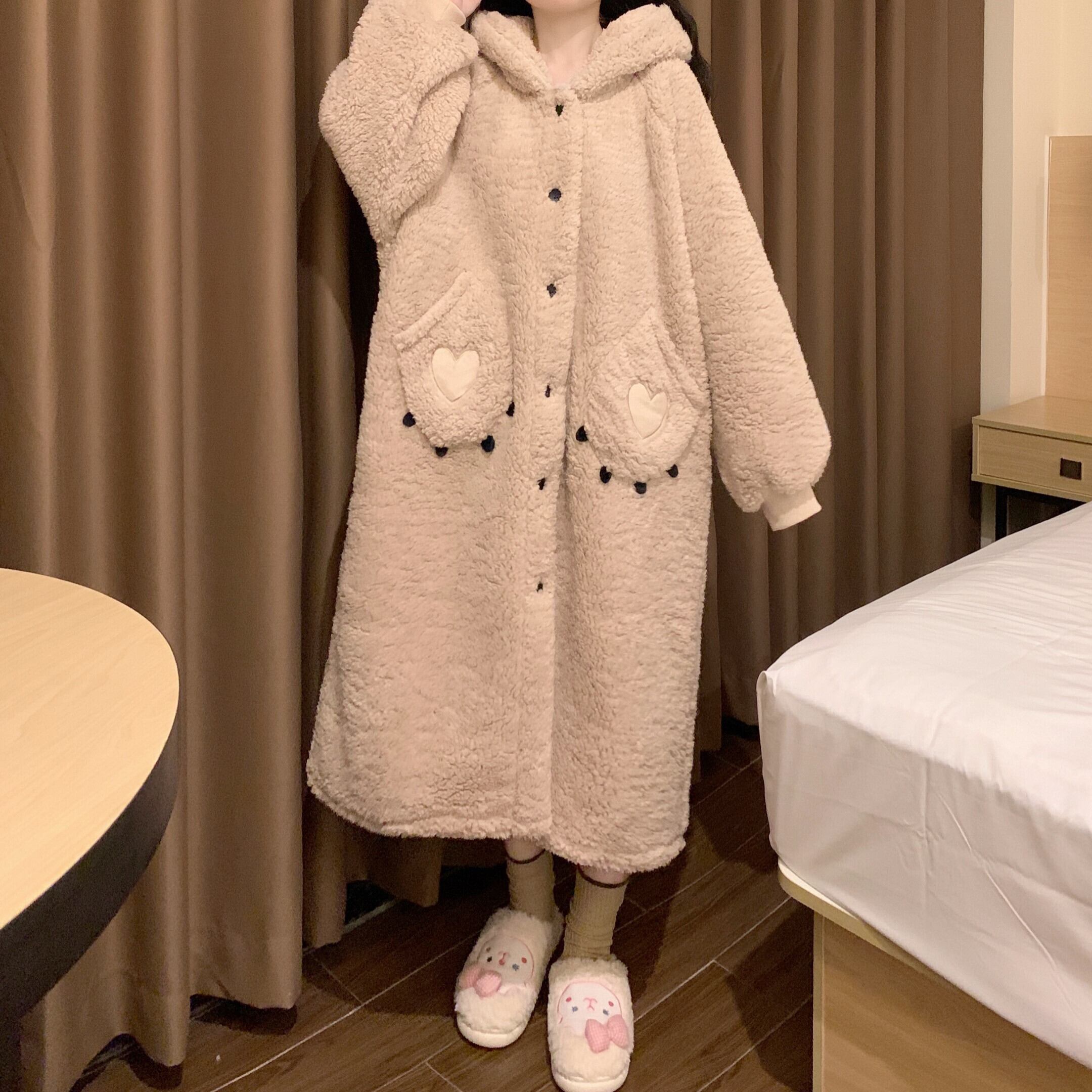 バスローブ風 熊 ブラウン もこもこルームウエア パジャマ 長袖 スリム 細身 ストレート スマート かわいい きれいめ シンプル 大人 上品 おしゃれ 大人可愛い 大人女子 こなれ感 ラフ クール モード系 セクシー エレガント 無地 春 秋 冬 誕生日 謝恩会 二次会 ハロウィン クリスマス バレンタイン レディース 女性用 学生 通学 デート お出かけ 女子会 お泊まり 休日 アウトドア パーティー イベント リゾート 旅行 ホテル レストラン 着回し 普段使い 韓国 韓国系 オルチャン ギフト