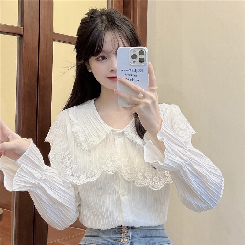 このシャツカーディガンは、シンプルさときれいさが共存した上品な1枚。レースのデザインがふんわりと優しさを演出してくれます。トップスとしても、カーディガンとしても、とっても使い勝手がいいんです。