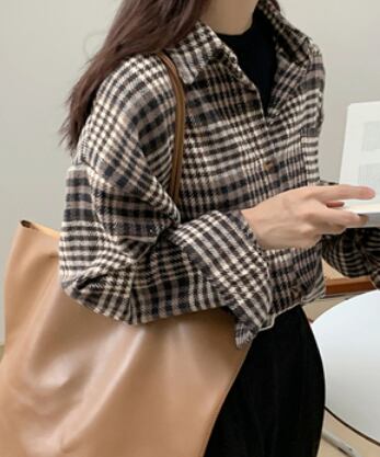 チェック柄のオーバー長袖シャツです。