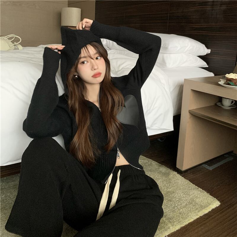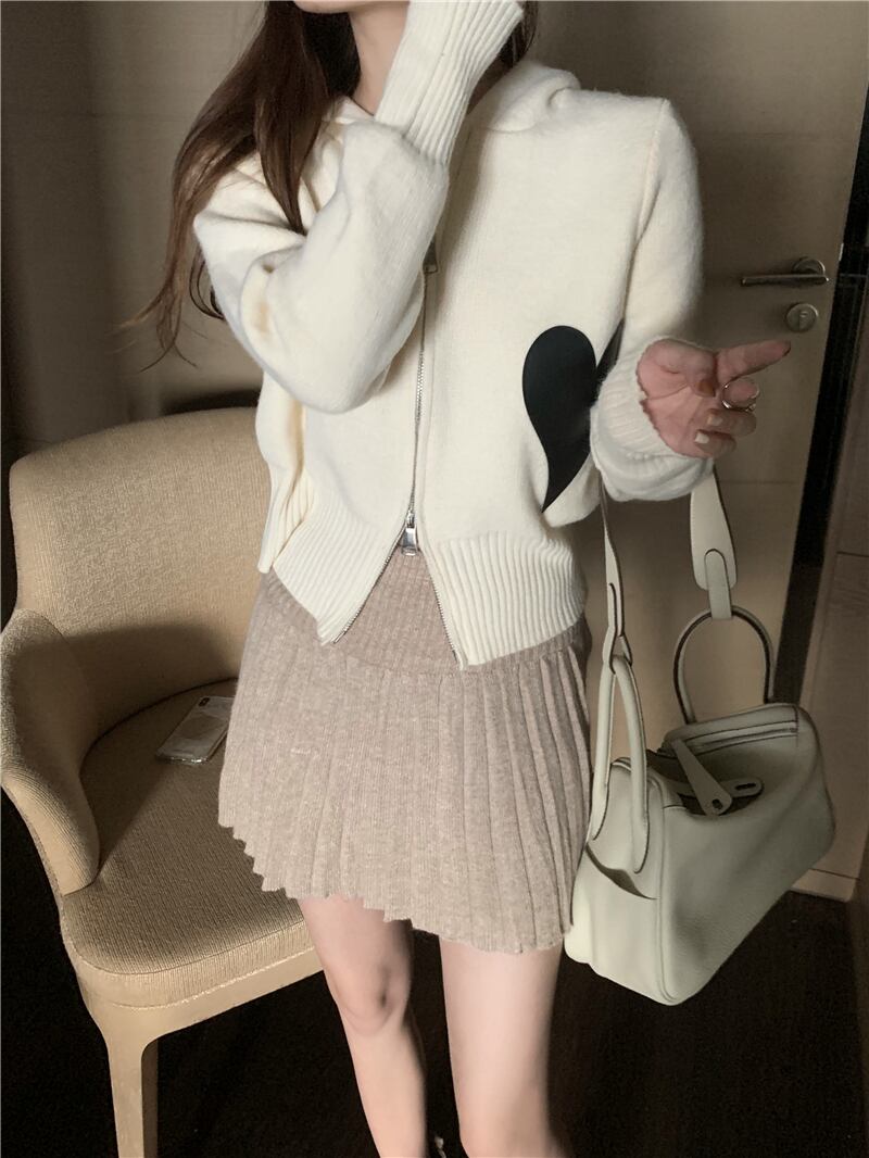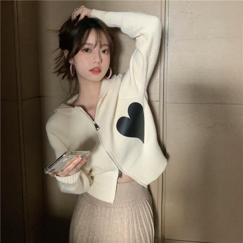 ハート柄パーカートップス ショート丈 袖あり 長袖 パーカー タイト 細身 ファスナー ポケット 前開き ニット かわいい 大人可愛い きれいめ シンプル カジュアル 大人 おしゃれ お洒落 かっこいい レトロ 大人女子 こなれ感 ラブリー キュート 個性的 クール モード系 モダン 主役級 存在感 ハート柄 春 秋 10代 20代 レディース 女性用 学生 通学 デート お出かけ 公園デビュー 休日 運動 アウトドア イベント リゾート 旅行 着回し ファッション コーデ スタイル 楽ちん 美脚