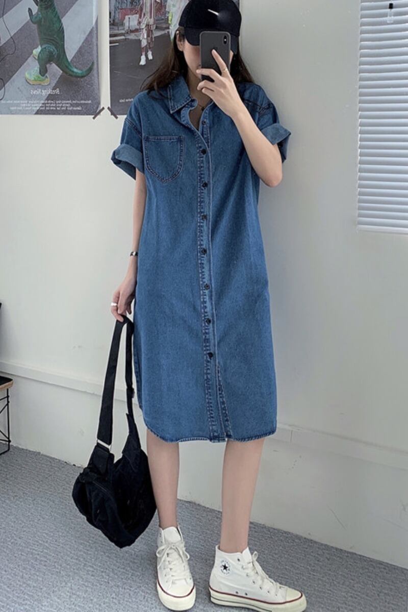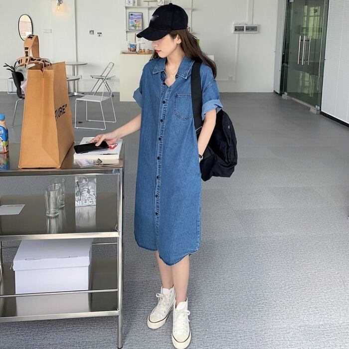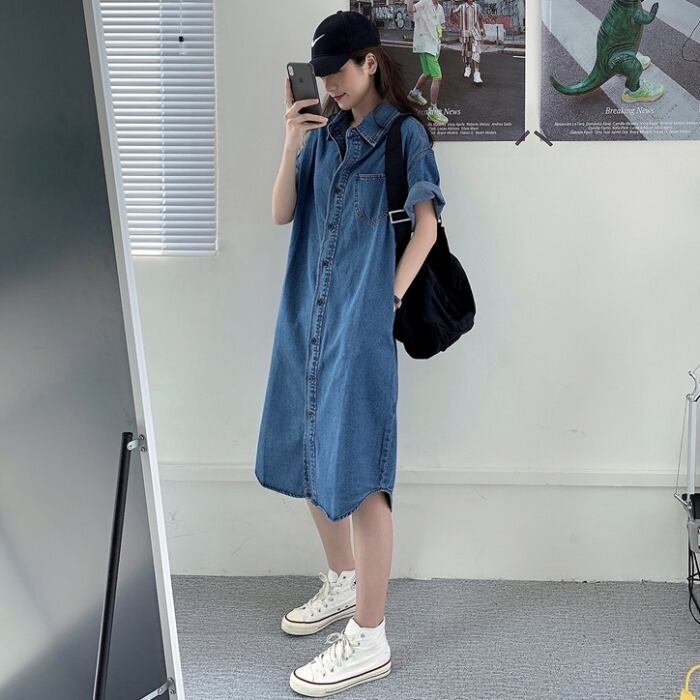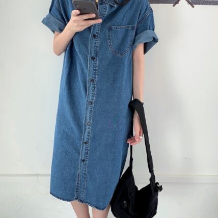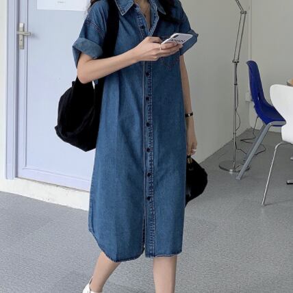 デニムワンピース ワンピース ミドル丈 袖あり 半袖 ポロカラー Aライン ハイウエスト 前開き デニム かわいい 大人可愛い きれいめ シンプル カジュアル 大人 おしゃれ お洒落 かっこいい レトロ 大人女子 こなれ感 ラフ マニッシュ スポーティー ラブリー キュート ガーリー モダン 無地 春 夏 10代 20代 30代 OL 通勤 学生 通学 デート お出かけ 公園デビュー パーティー リゾート 旅行 ガーデン 着回し コーデ スタイル 楽ちん モテ 大特価 話題 新入荷 目玉 おすすめ